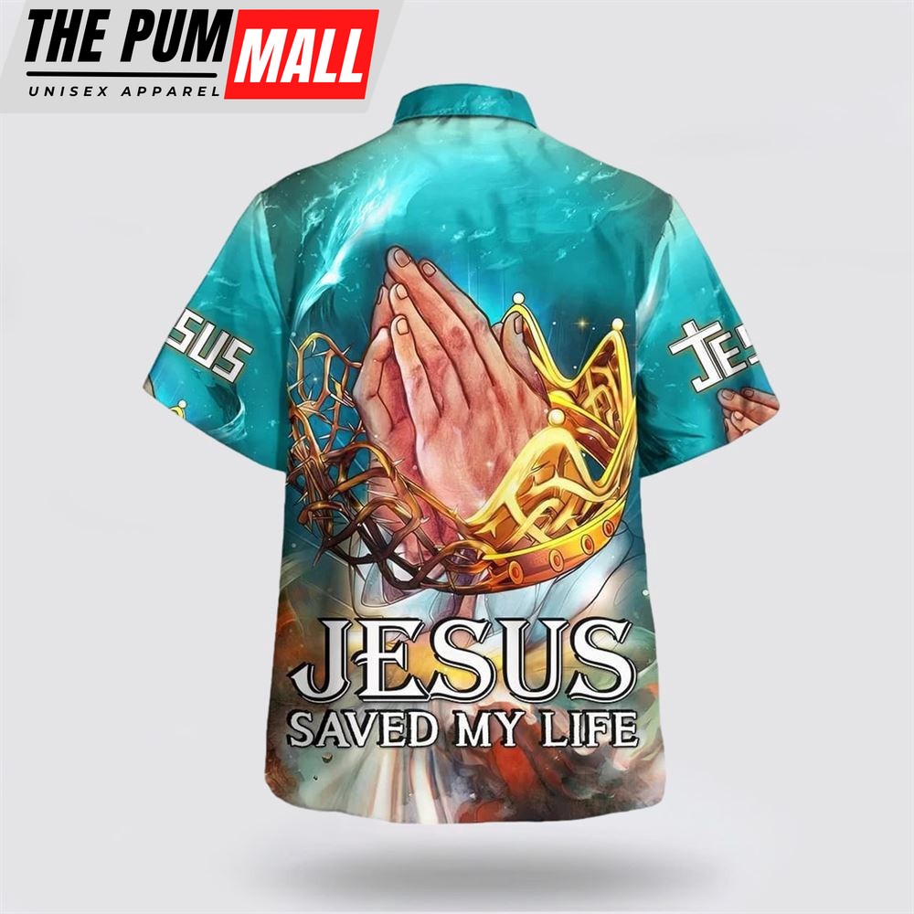 Christian Hawaiian Shirt, Jesus Saved My Life Hawaiian Shirt, Hand Praying Hawaiian Shirts, Christian Clothing Hawaii
