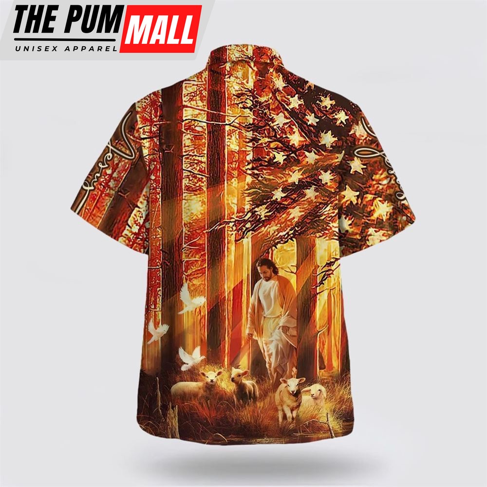 Christian Hawaiian Shirt, Jesus Walking In The Forest With The Sheep Hawaiian Shirt, Christian Clothing Hawaii