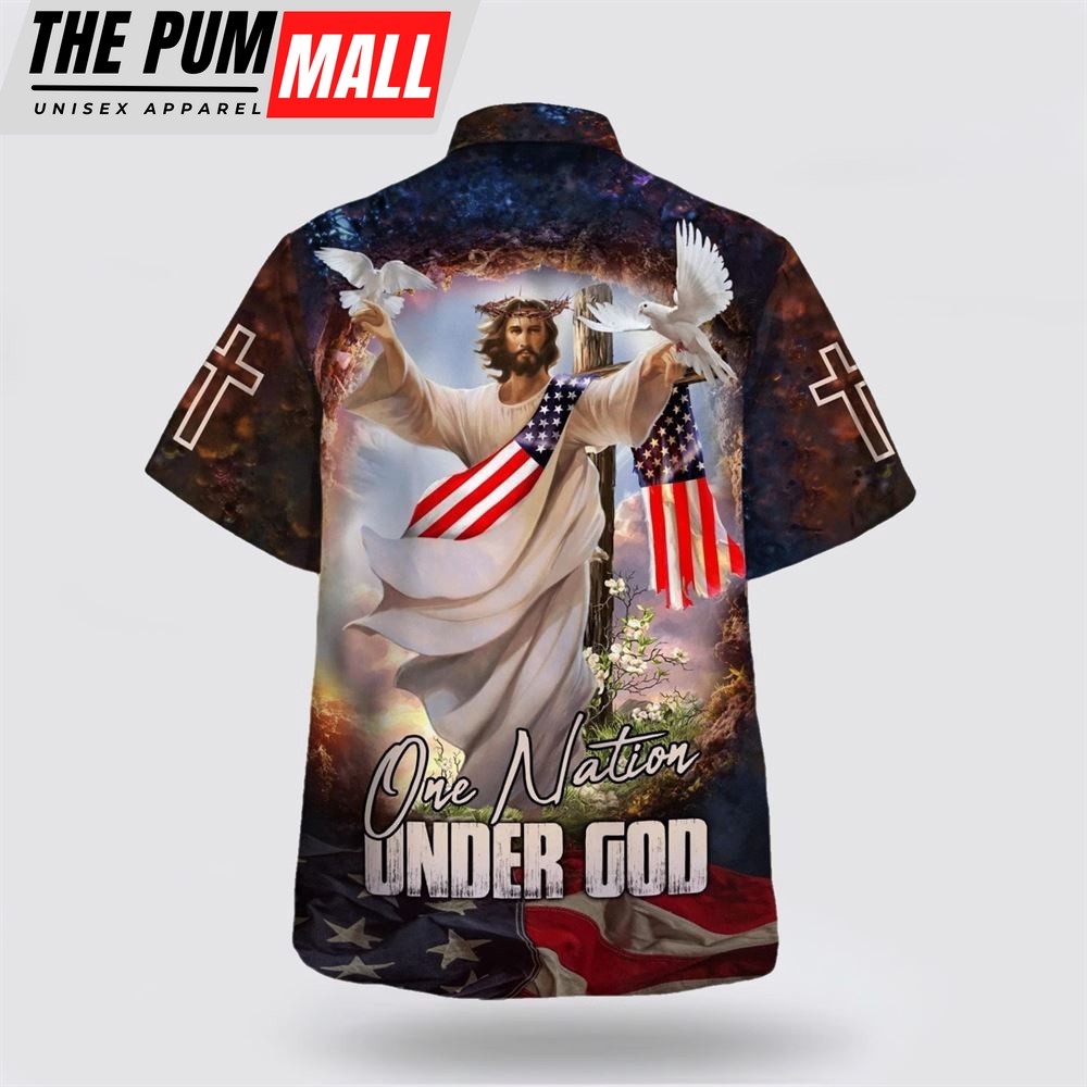 Christian Hawaiian Shirt, Jesus With His Arms Open Dove Hawaiian Shirt, One Nation Under God Hawaiian Shirts, Christian Clothing Hawaii
