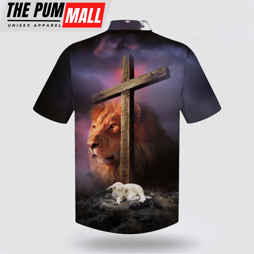 Christian Hawaiian Shirt, Lion Sheep Wooden Cross Hawaiian Shirts, Christian Clothing Hawaii