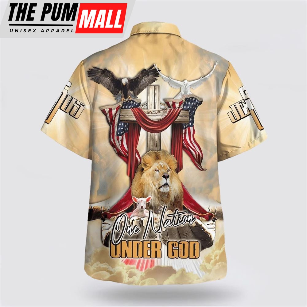 Christian Hawaiian Shirt, One Nation Under God America Flag Lion And The Lamb Jesus Hawaiian Shirt, Christian Clothing Hawaii