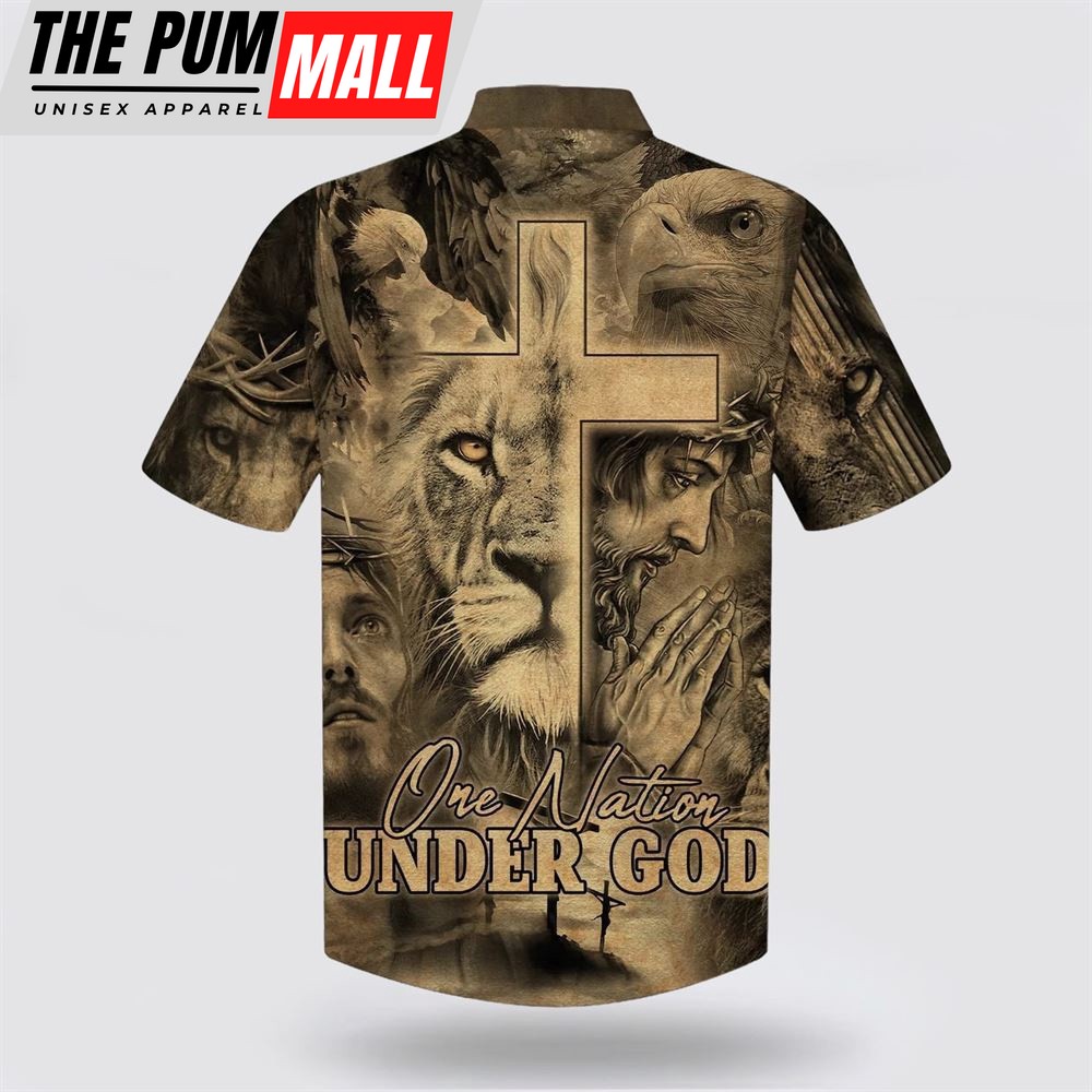 Christian Hawaiian Shirt, One Nation Under God Hawaiian Shirt For Men, Jesus And The Lion Of Judah Hawaiian Shirts, Christian Clothing Hawaii