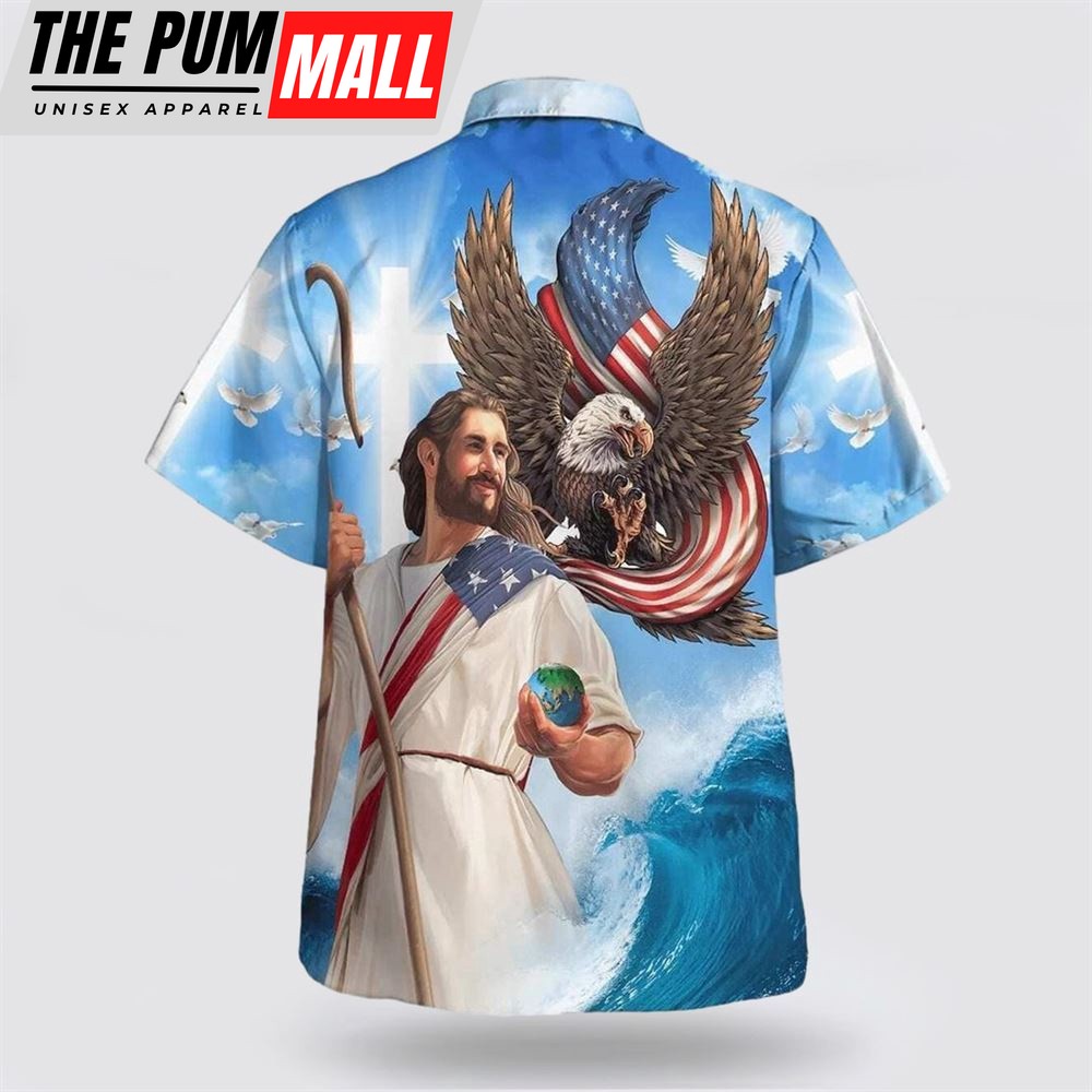 Christian Hawaiian Shirt, One Nation Under God Independence Day Jesus Eagle American Hawaiian Shirt, Christian Clothing Hawaii