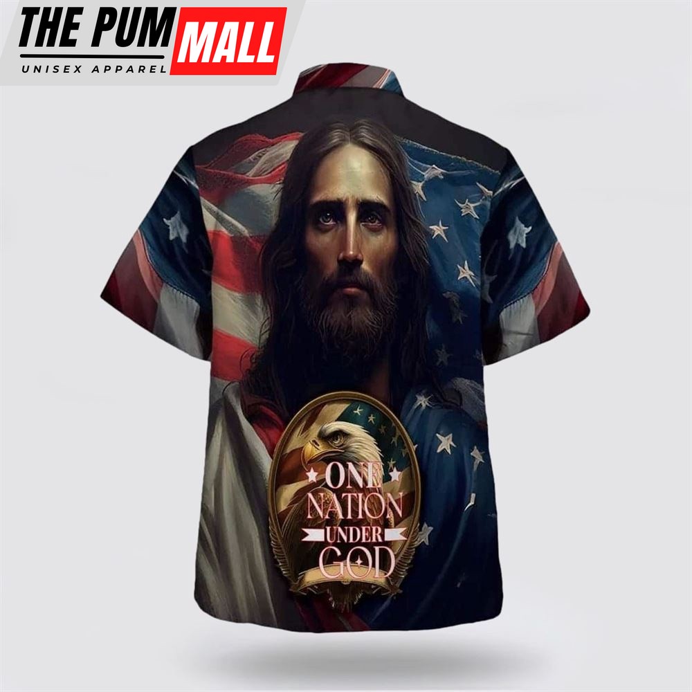Christian Hawaiian Shirt, One Nation Under God Jesus Eagle American Flag, Christian Clothing Hawaii