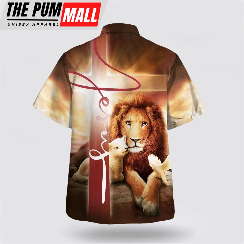 Christian Hawaiian Shirt, The King Lion Lamb And Dove Hawaiian Shirts, Christian Clothing Hawaii
