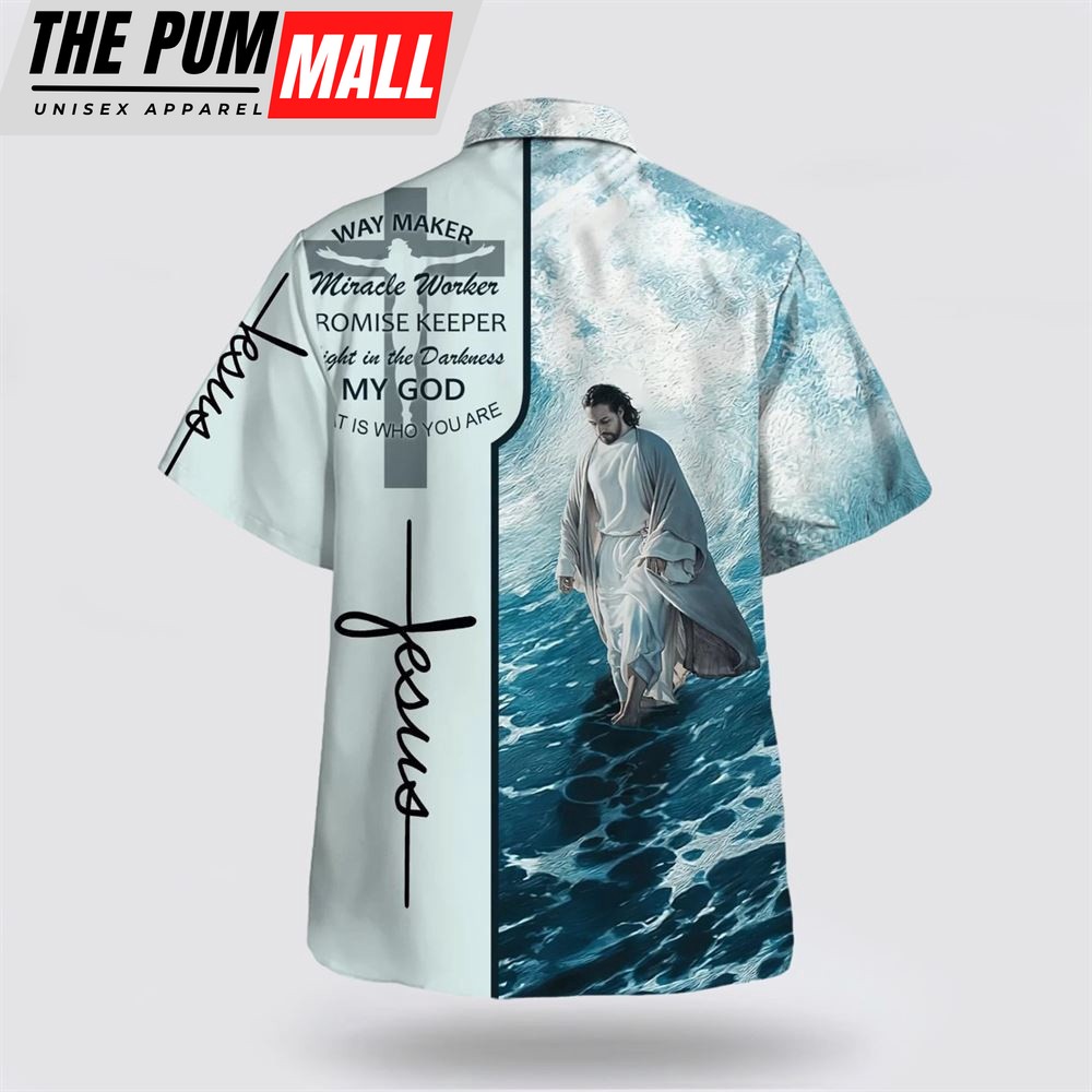Christian Hawaiian Shirt, Way Maker Miracle Worker Promise Keeper Light In The Darkness Jesus Walking On Water Hawaiian Shirt