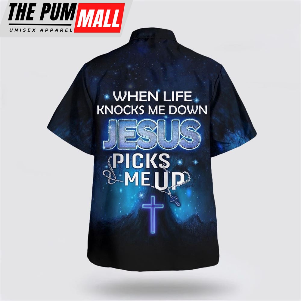 Christian Hawaiian Shirt, When Life Knocks Me Down Jesus Picks Me Up Hawaiian Shirt, Christian Clothing Hawaii