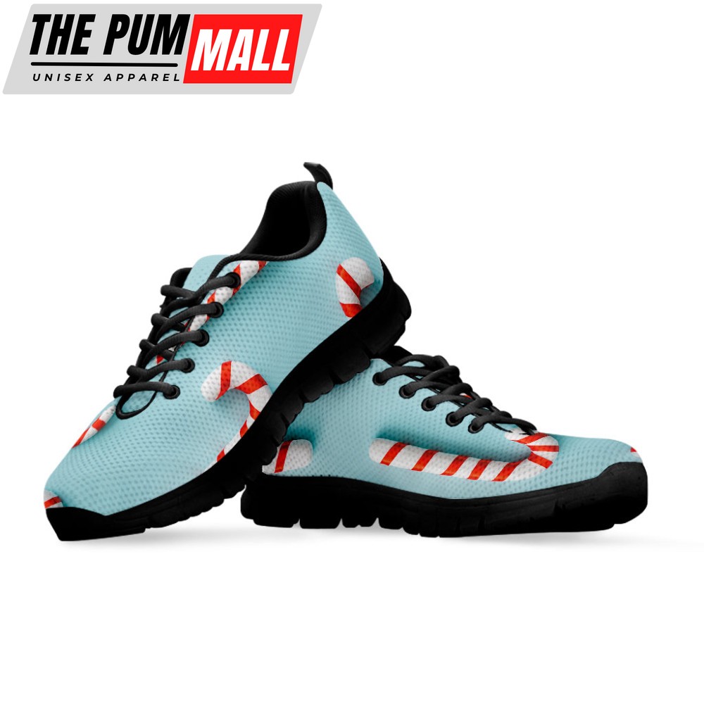 Christmas Candy Candies Pattern Print Black Running Shoes, Gift For Men And Women