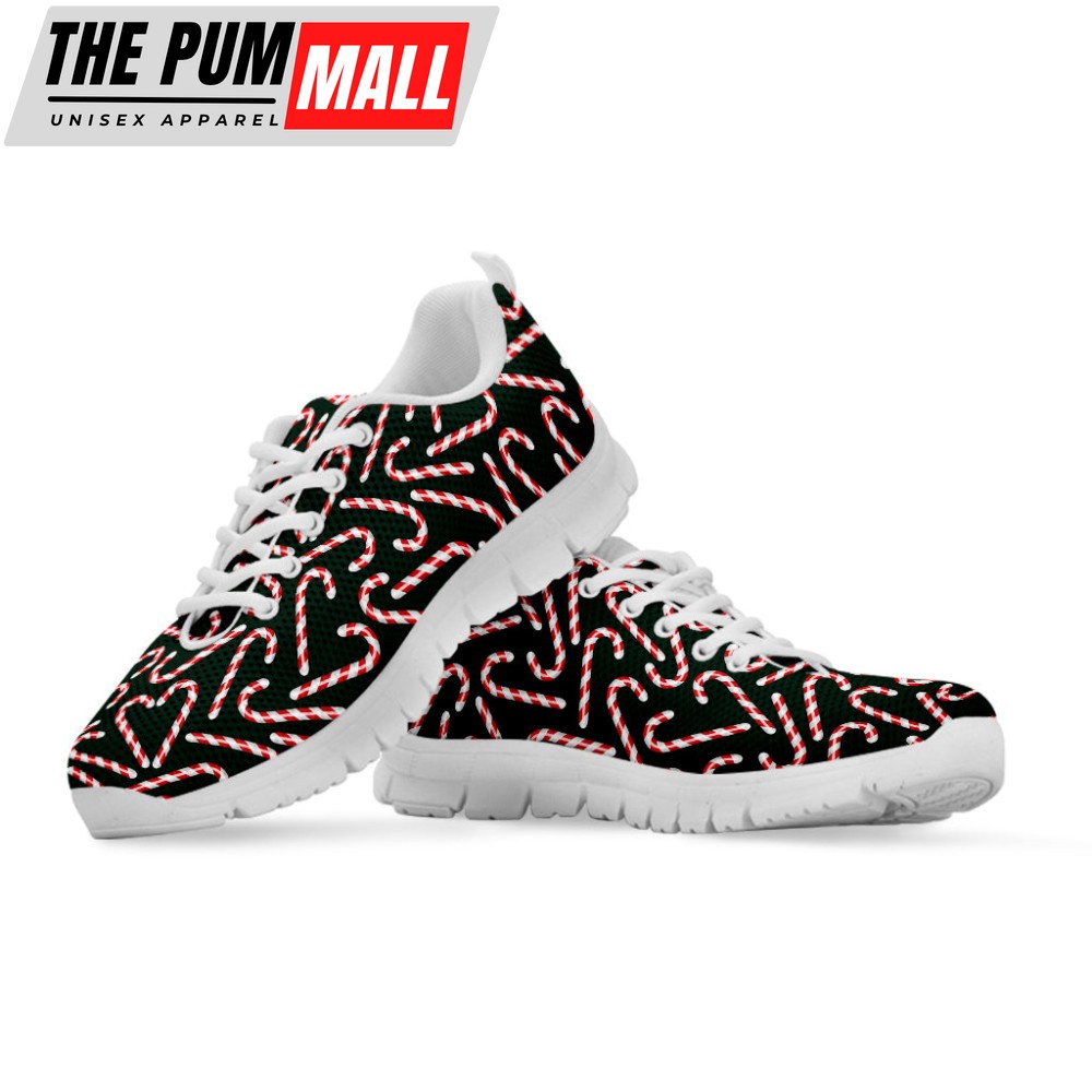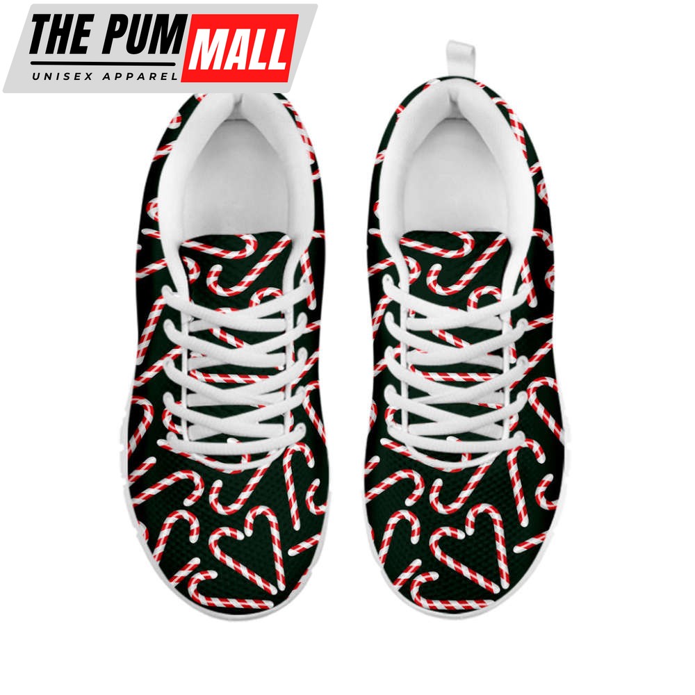 Christmas Candy Cane Pattern Print White Running Shoes, Gift For Men And Women