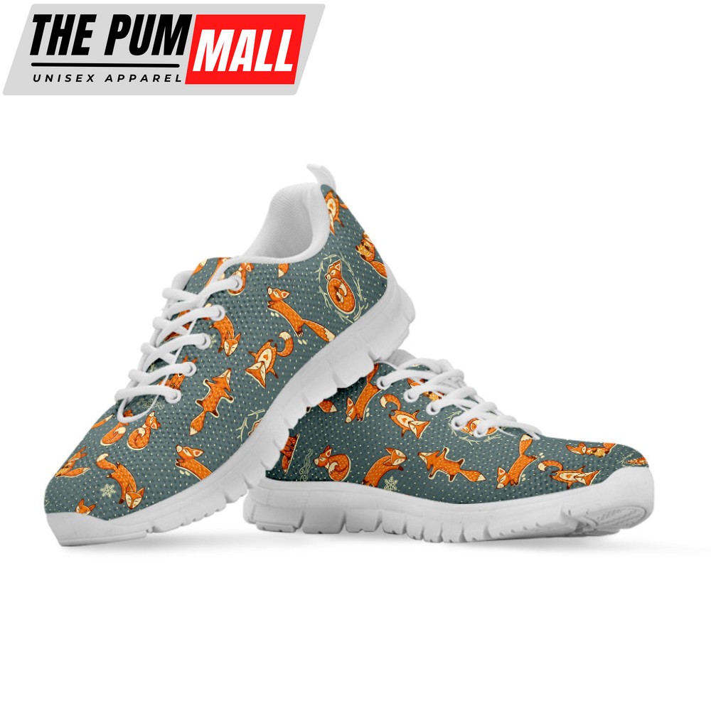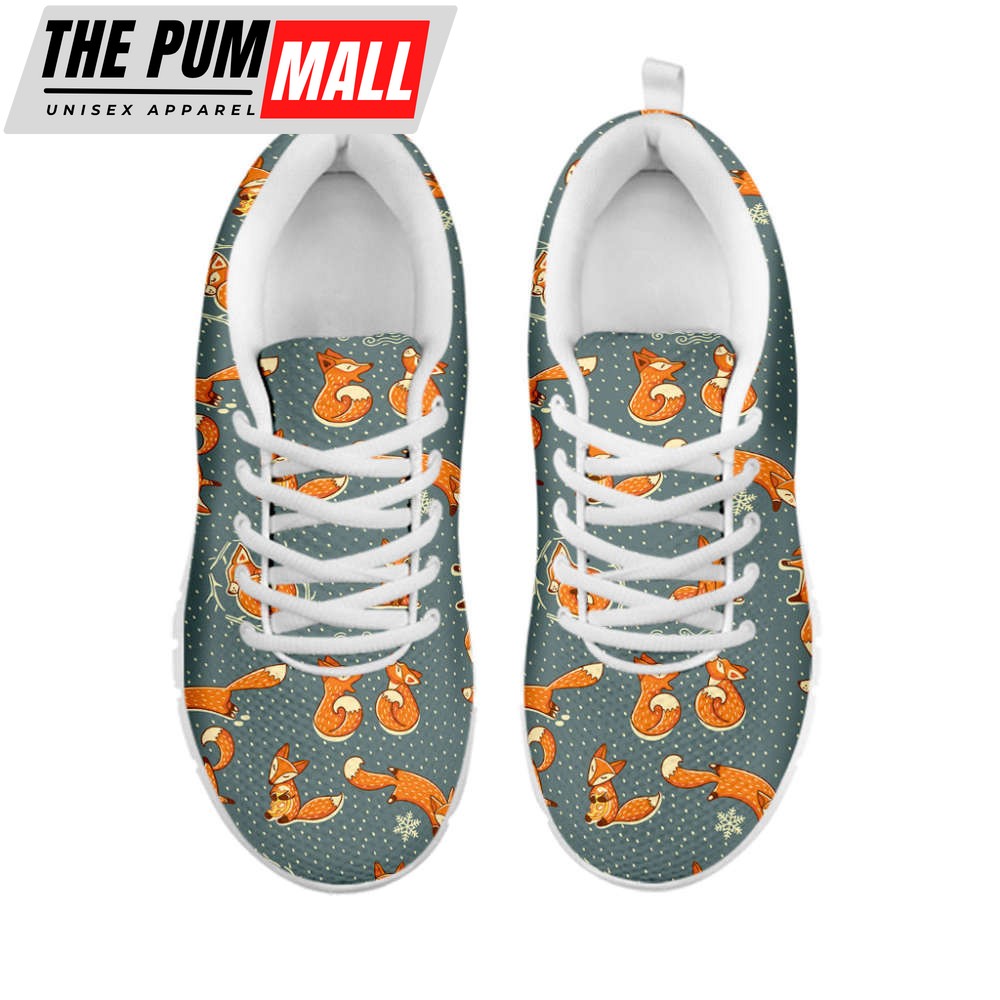Christmas Fox Pattern Print White Running Shoes, Gift For Men And Women