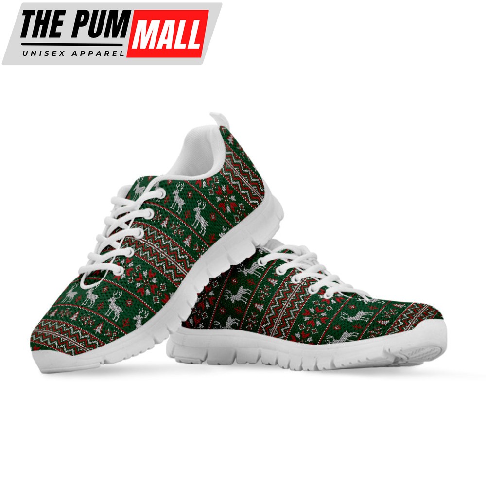 Christmas Holiday Knitted Pattern Print White Running Shoes, Gift For Men And Women
