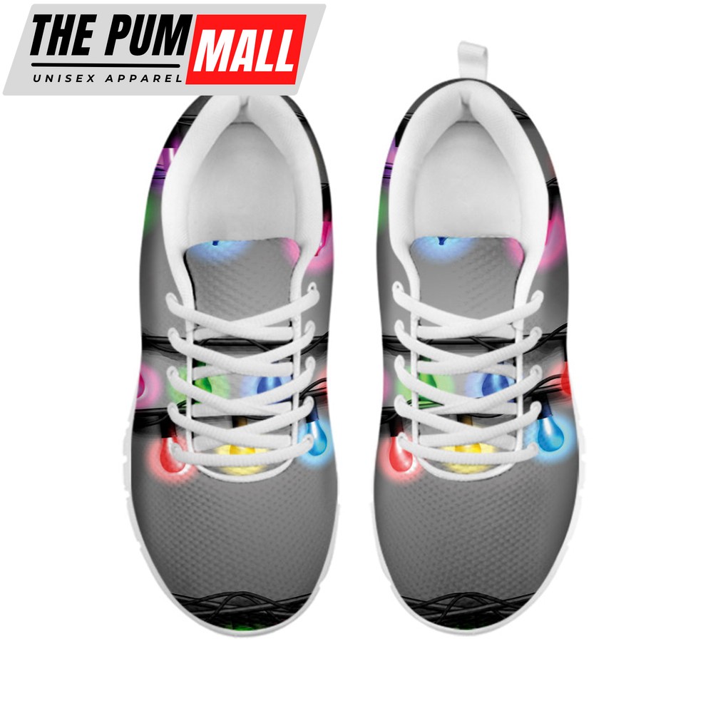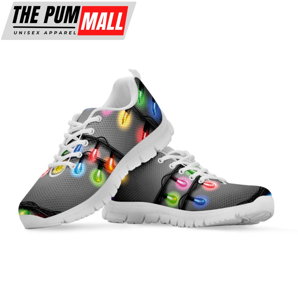 Christmas Holiday Lights Print White Running Shoes, Gift For Men And Women