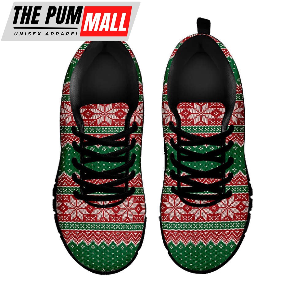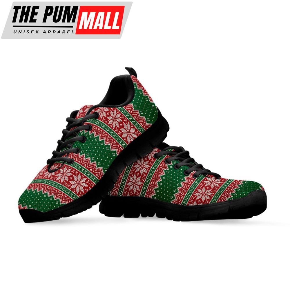 Christmas Knitted Pattern Print Black Running Shoes, Gift For Men And Women