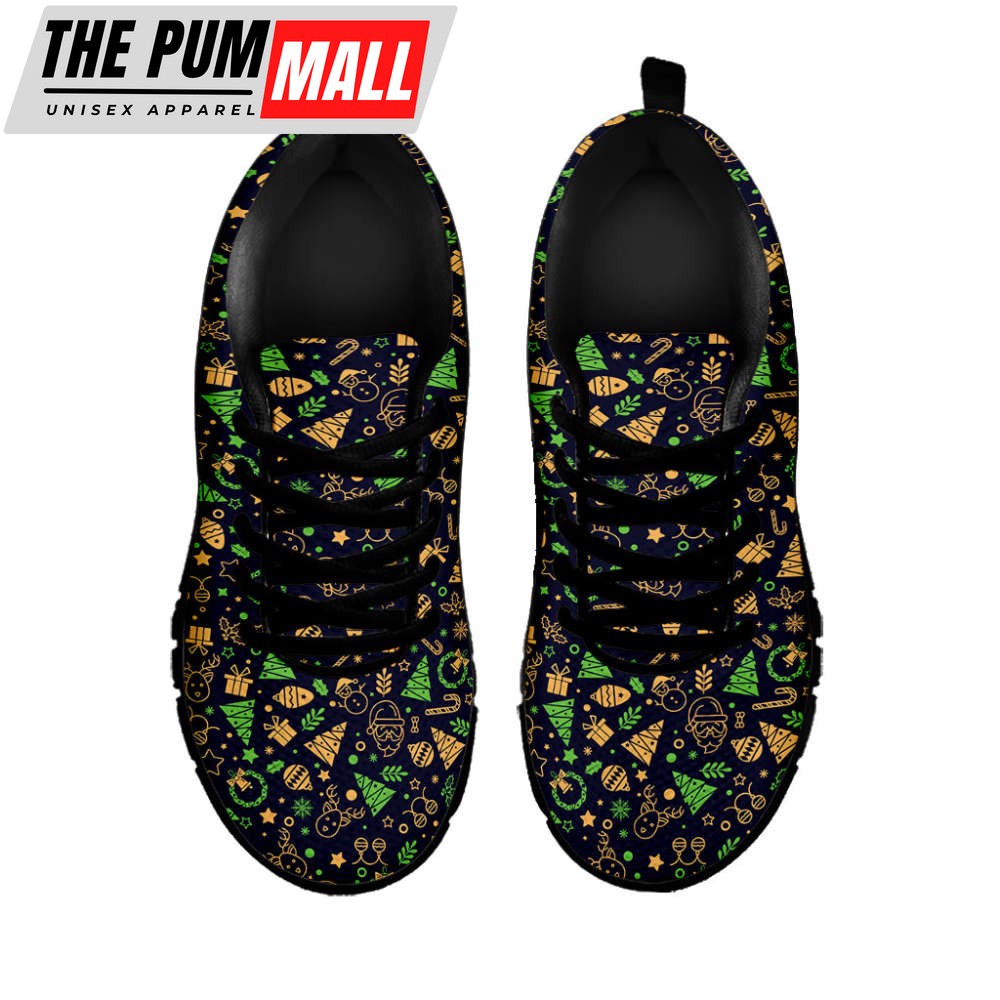 Christmas Party Elements Pattern Print Black Running Shoes, Gift For Men And Women
