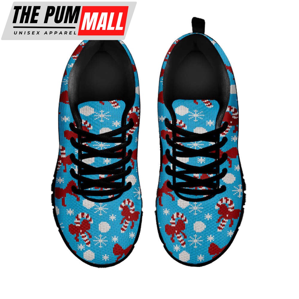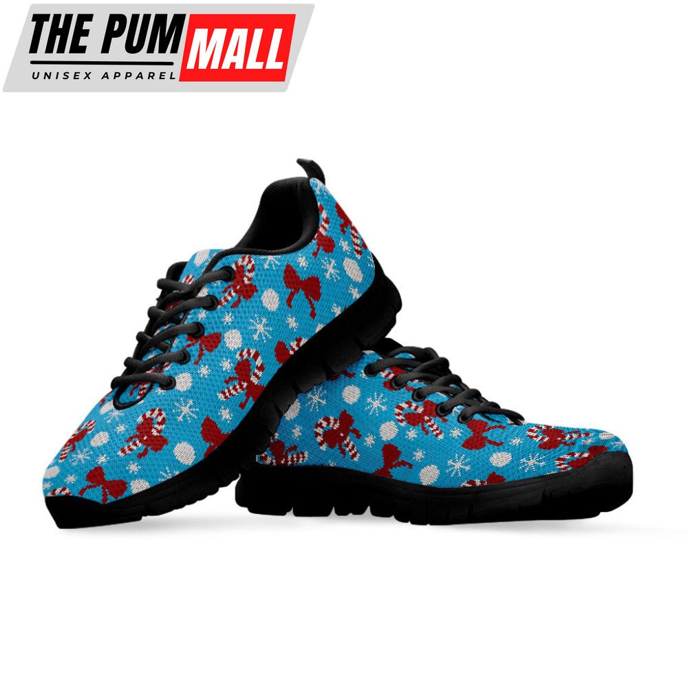 Christmas Party Knitted Pattern Print Black Running Shoes, Gift For Men And Women