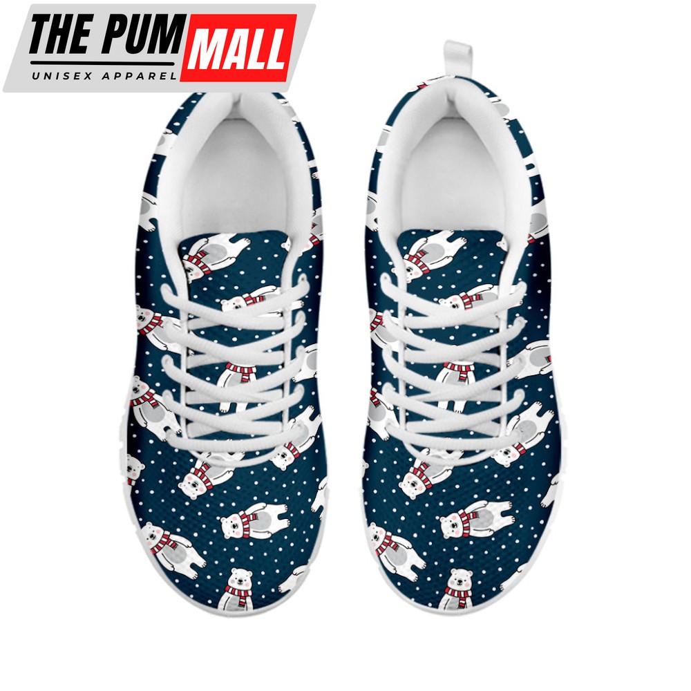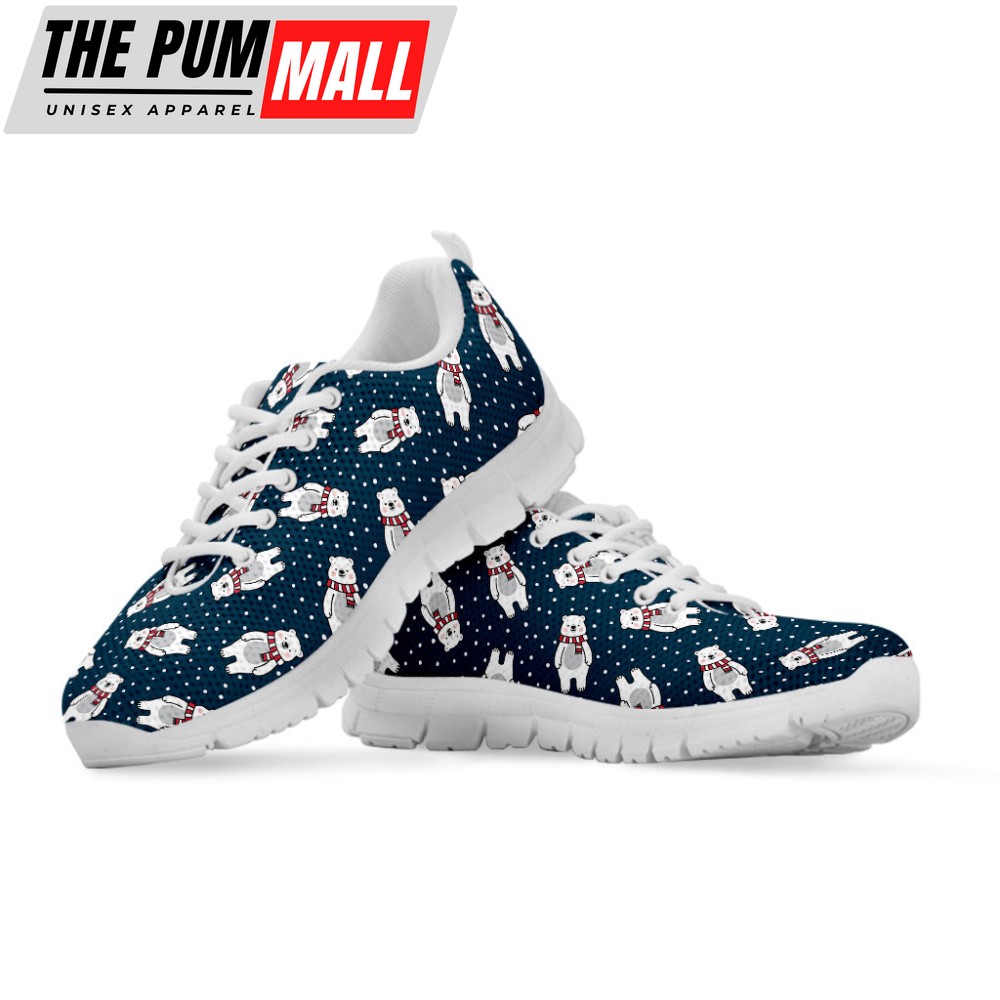 Christmas Polar Bear Pattern Print White Running Shoes, Gift For Men And Women