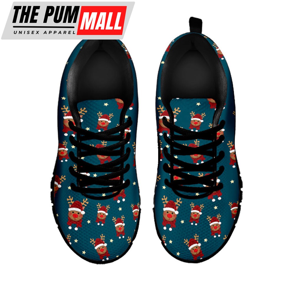 Christmas Santa Reindeer Pattern Print Black Running Shoes, Gift For Men And Women