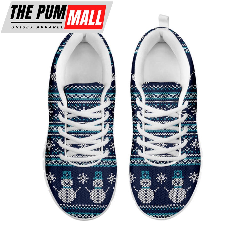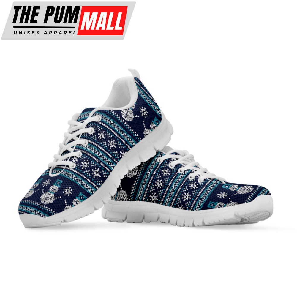 Christmas Snowman Knitted Pattern Print White Running Shoes, Gift For Men And Women