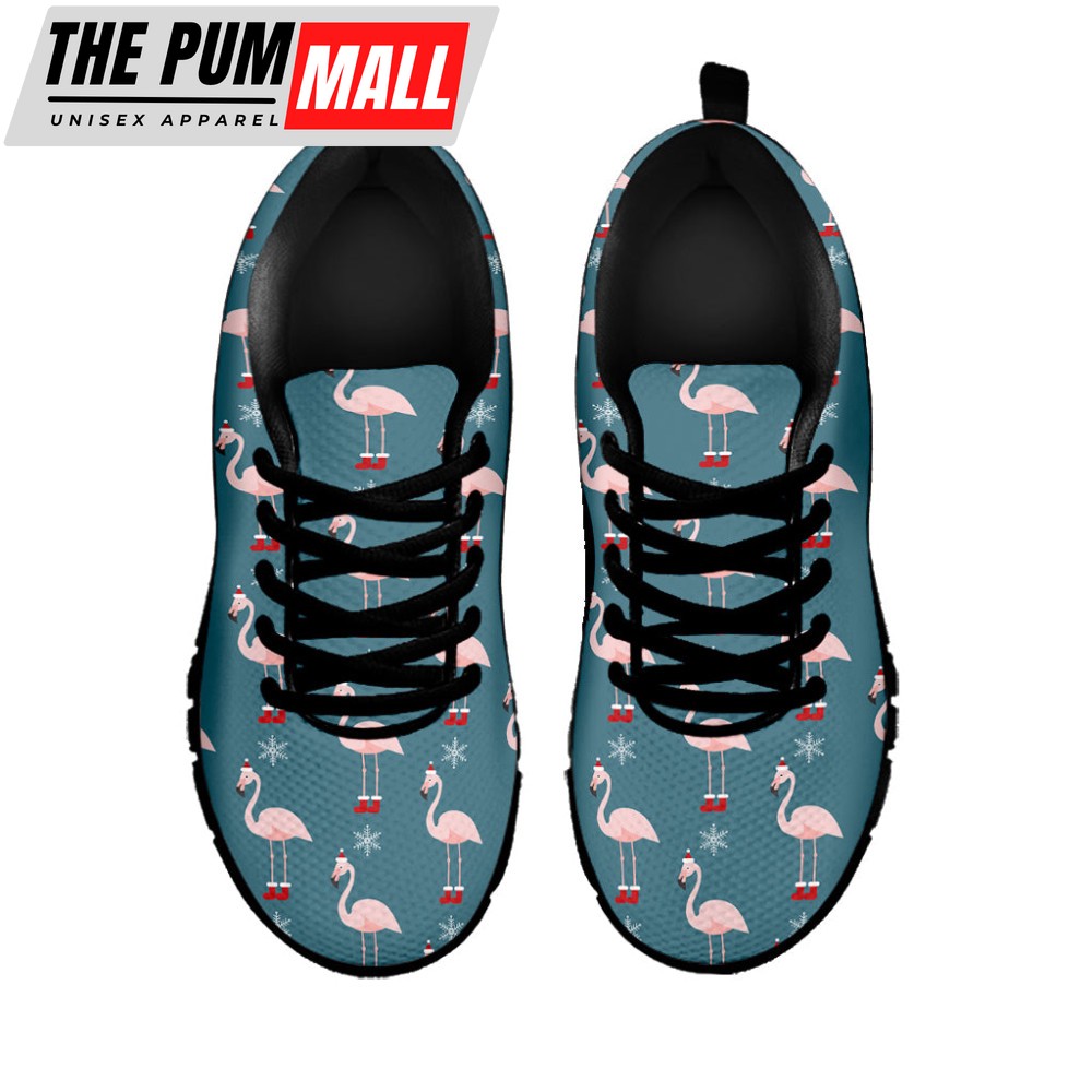 Christmas Snowy Flamingo Pattern Print Black Running Shoes, Gift For Men And Women