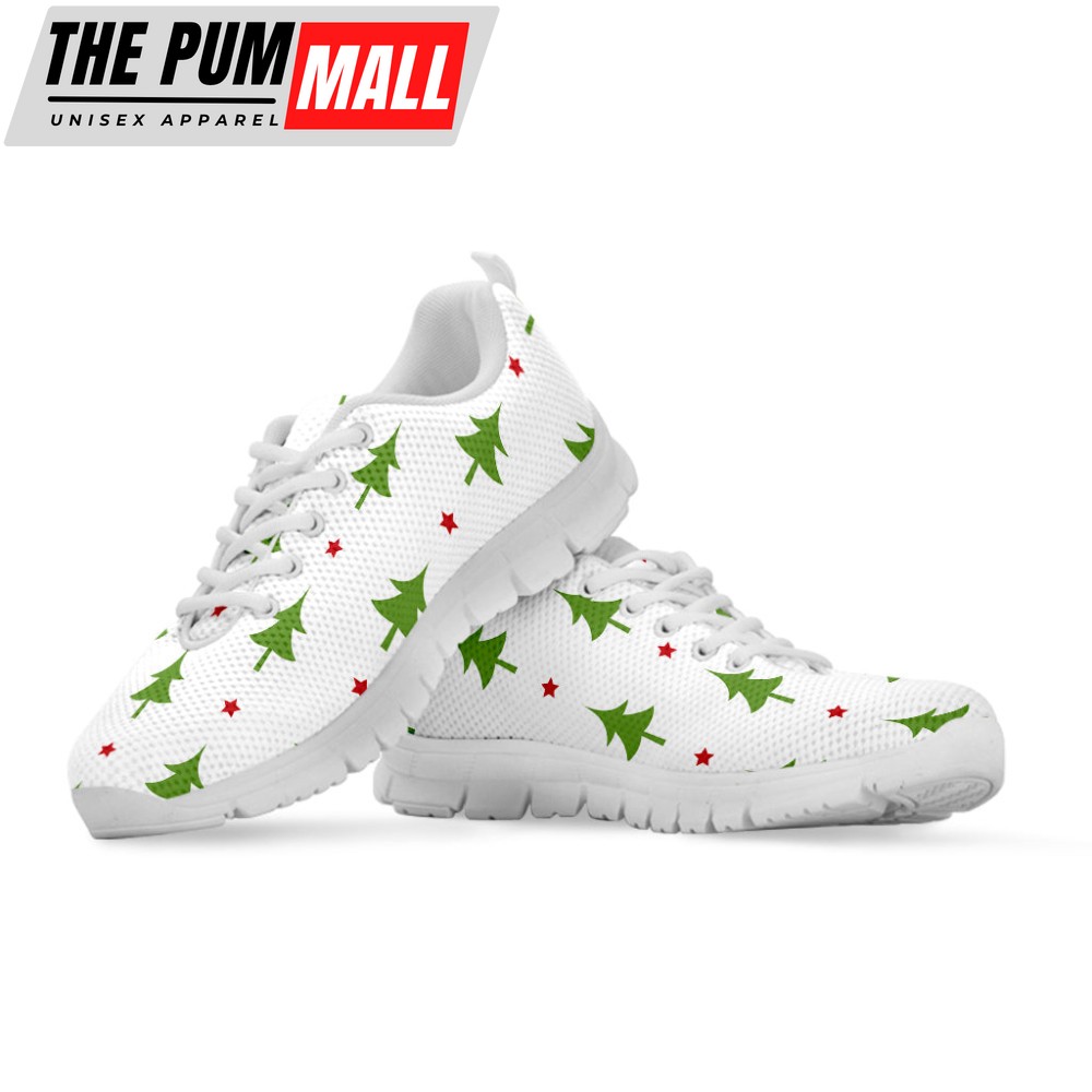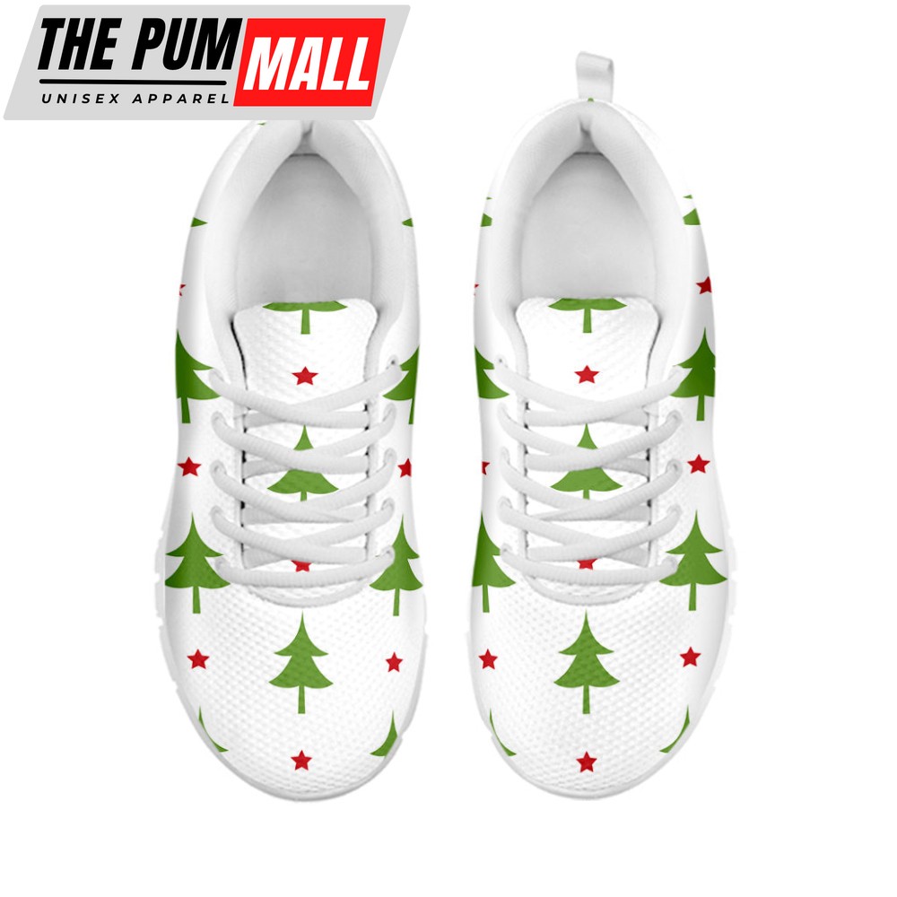 Christmas Tree And Star Pattern Print White Running Shoes, Gift For Men And Women