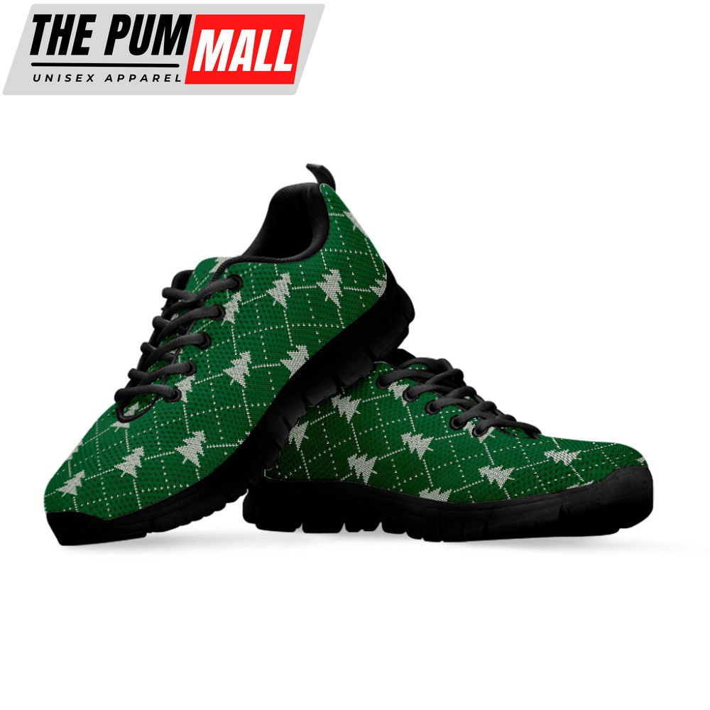 Christmas Tree Knitted Pattern Print Black Running Shoes, Gift For Men And Women
