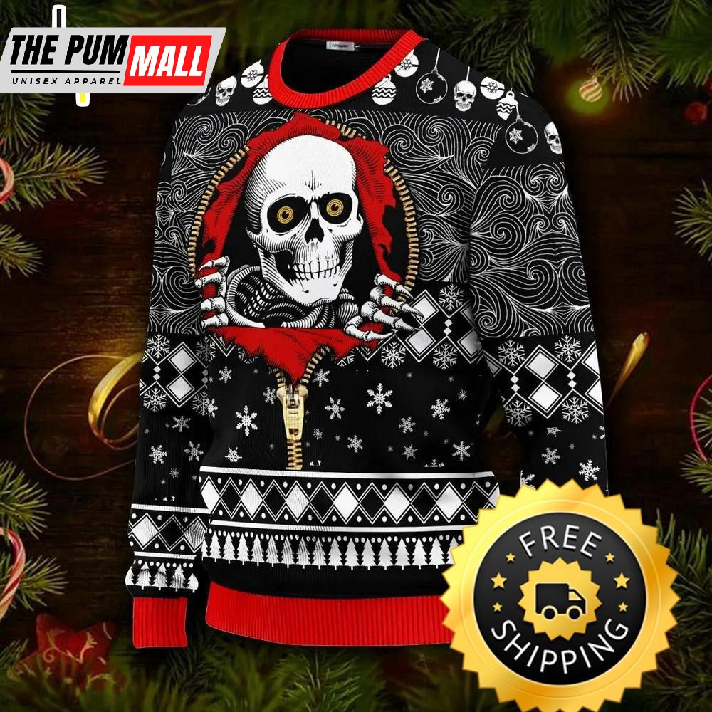 Cool Skull Inside Zip Shirt Skull Ugly Christmas Sweater, Skull Ugly Sweater