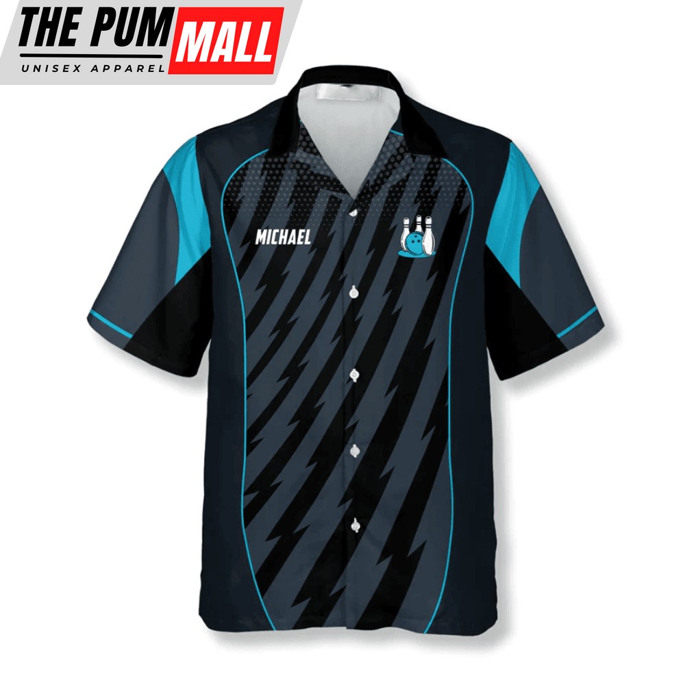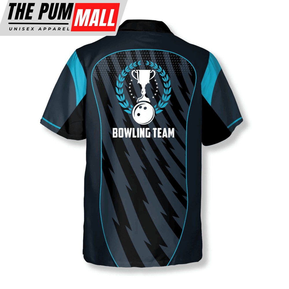Custom Blue Sports Bowling Hawaiian Shirt Trophy Emblem Team Gift
