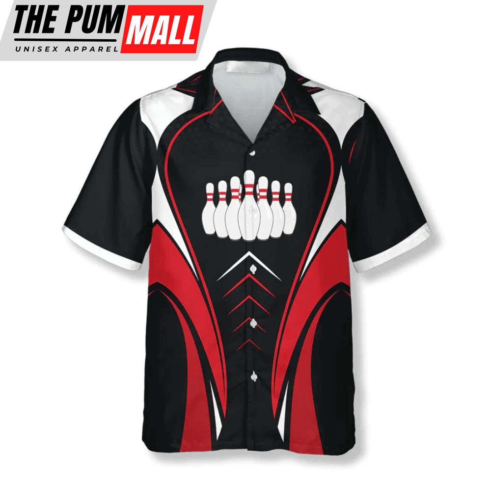 Custom Bowling Hawaiian Shirt in Red Black Perfect Bowling Team Shirt & Player Gift