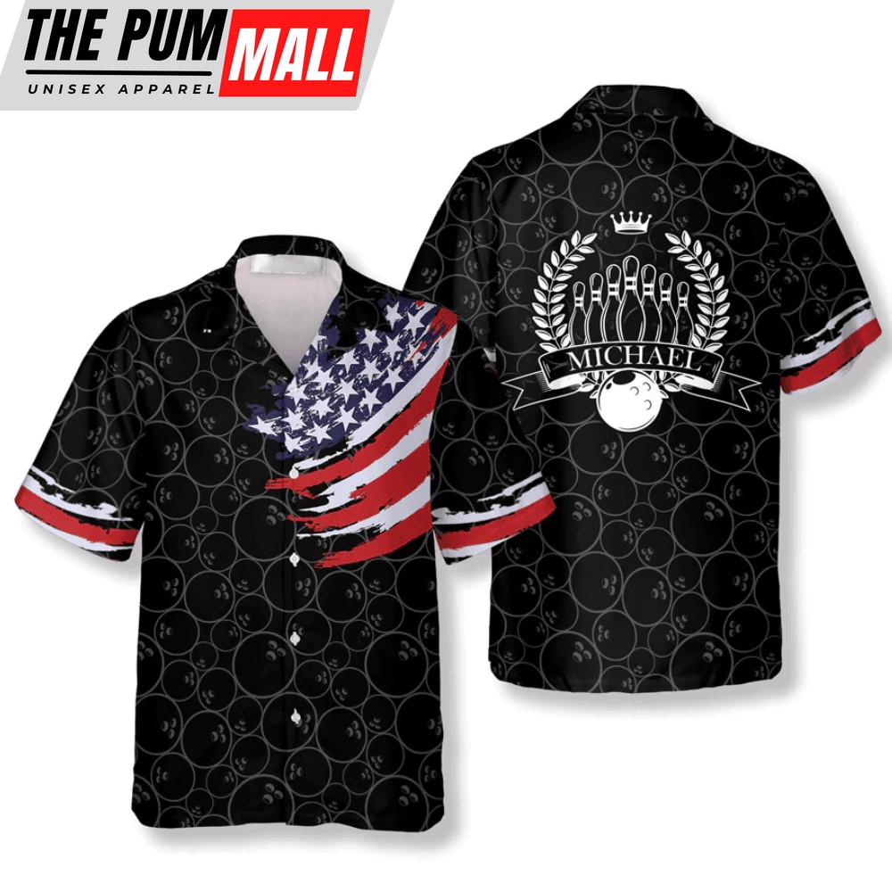 Custom Bowling Hawaiian Shirt with Bowling Pattern Flag Crown Emblem