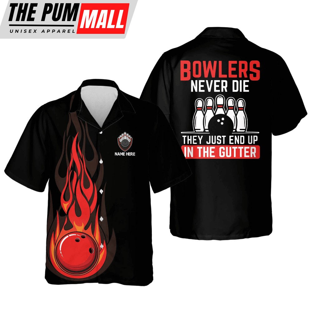 Custom Name Bowling Hawaiian Shirt: Gutter Flame Design for Men