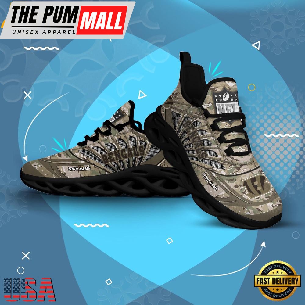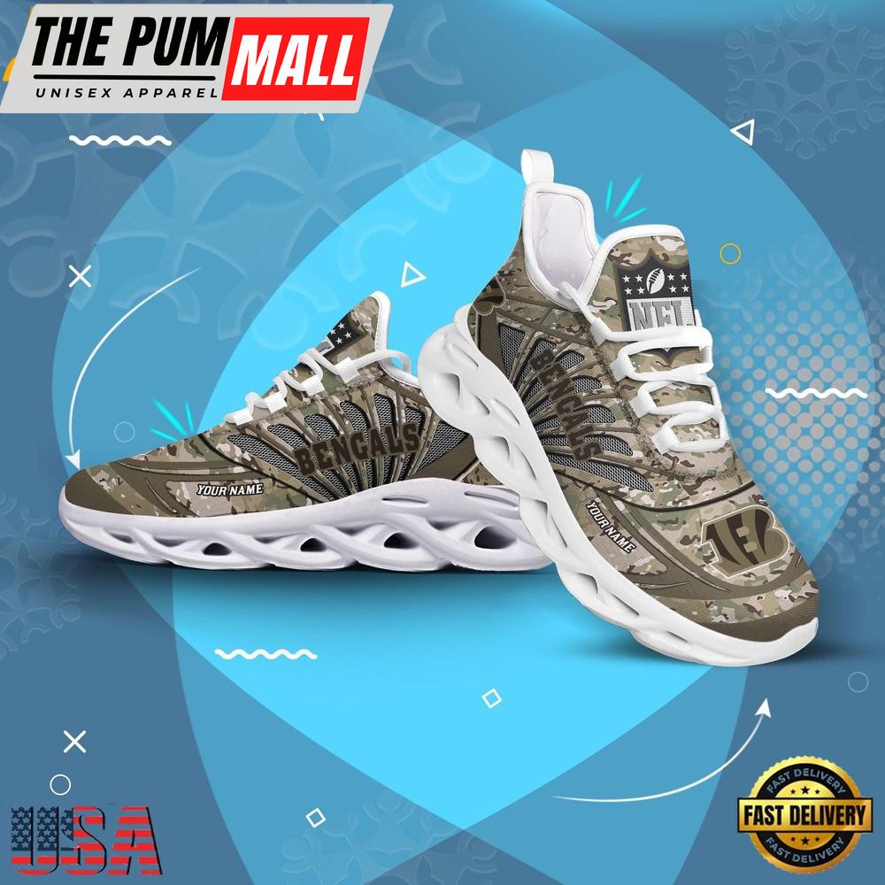 Custom Name NFL Cincinnati Bengals Camo Veteran Day Max Soul Shoes