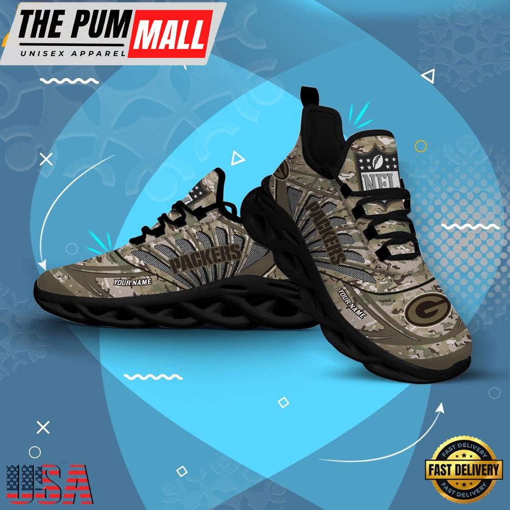 Custom Name NFL Green Bay Packers Camo Veteran Day Max Soul Shoes