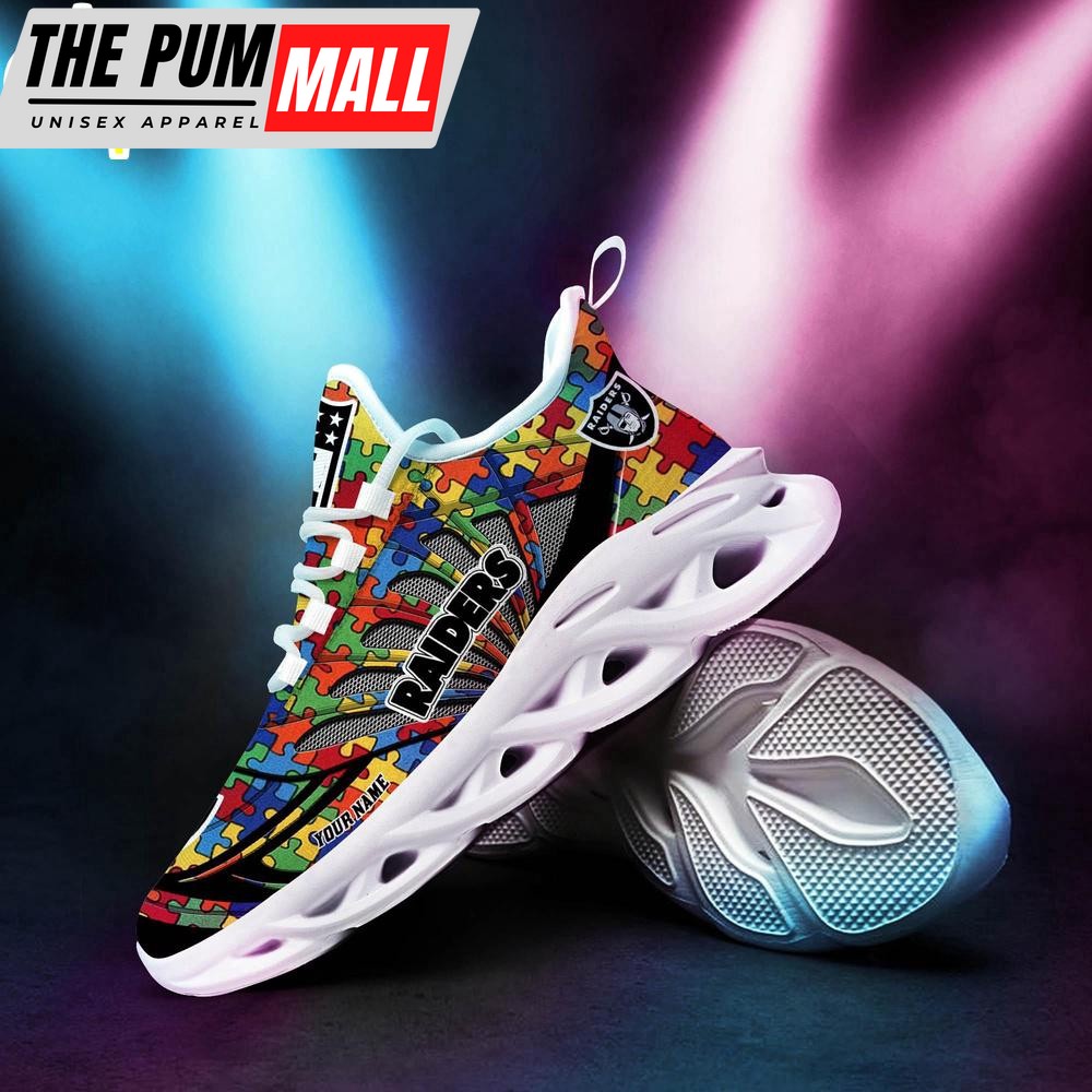 Custom Name NFL Las Vegas Raiders Autism Clunky Max Soul Shoes