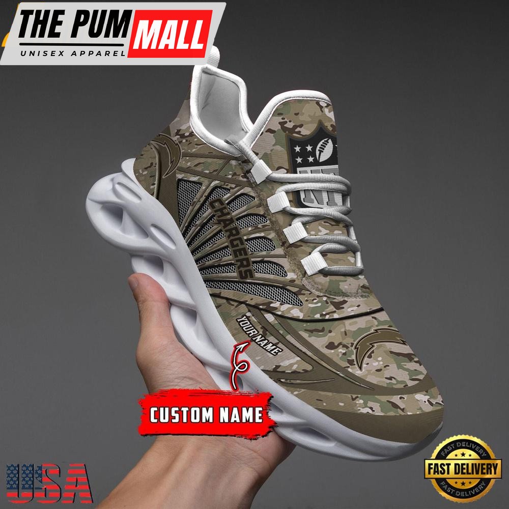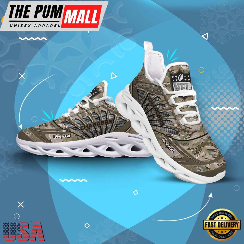 Custom Name NFL Los Angeles Chargers Camo Veteran Day Max Soul Shoes