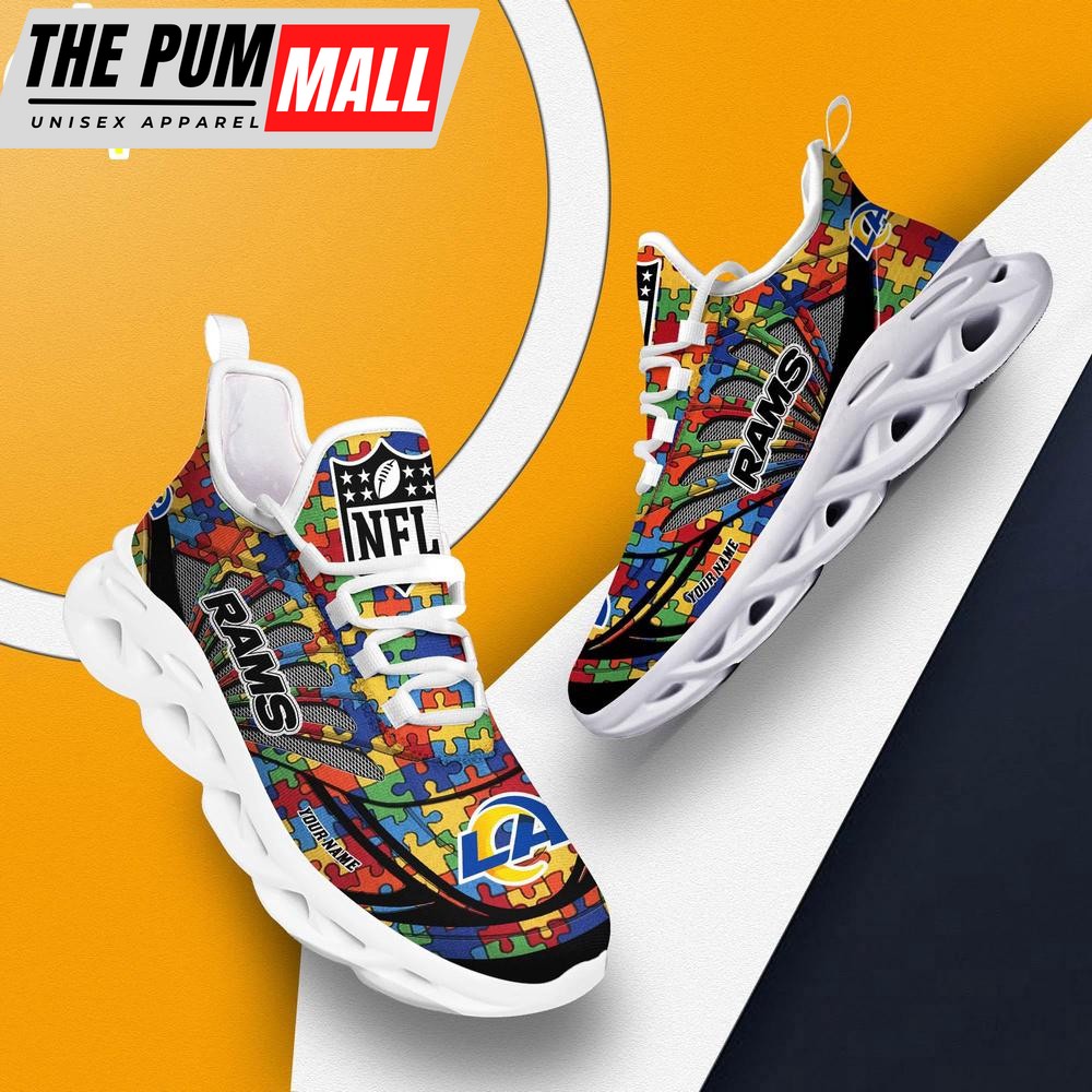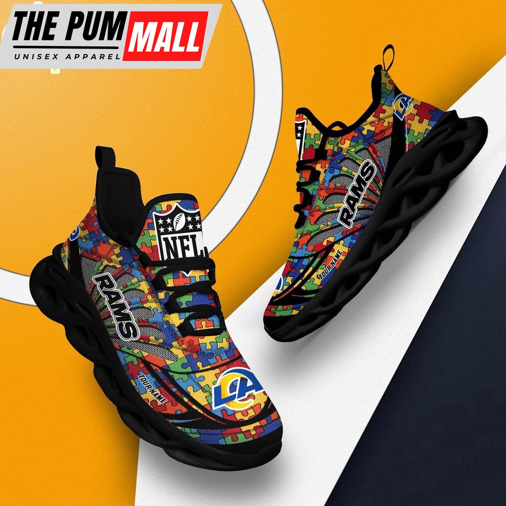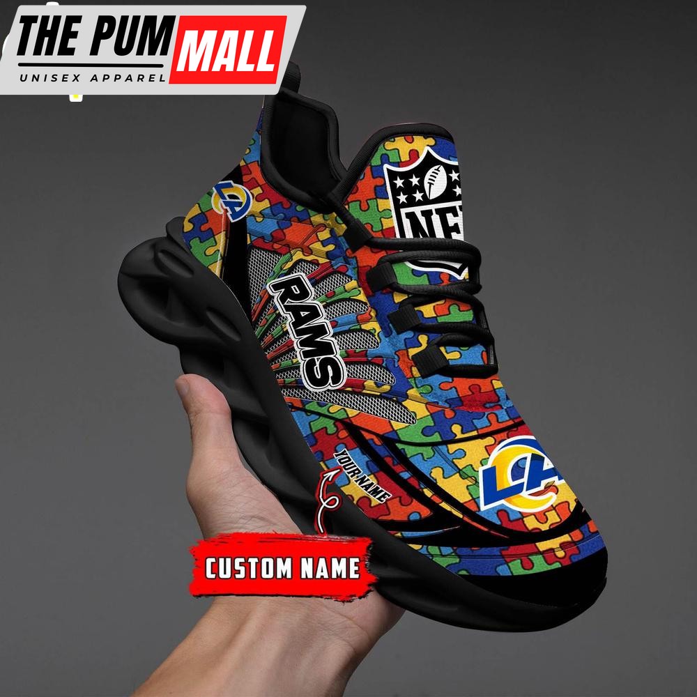 Custom Name NFL Los Angeles Rams Autism Clunky Max Soul Shoes