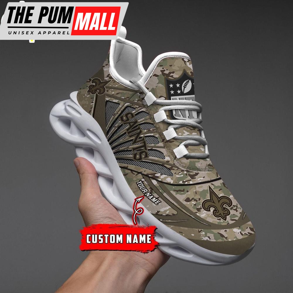 Custom Name NFL New Orleans Saints Camo Veteran Day Max Soul Shoes