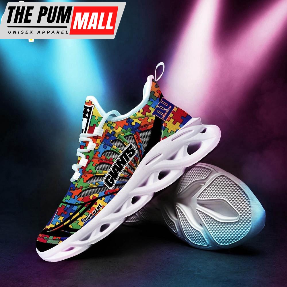 Custom Name NFL New York Giants Autism Clunky Max Soul Shoes