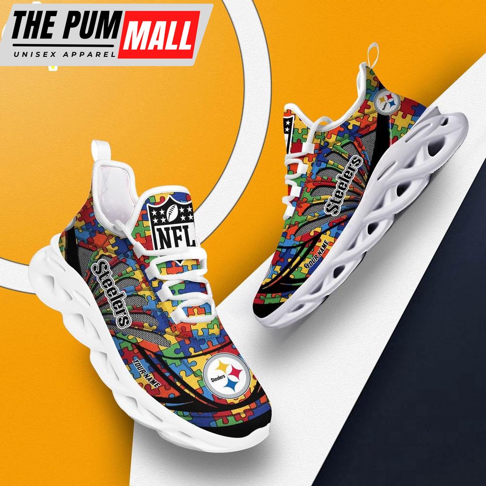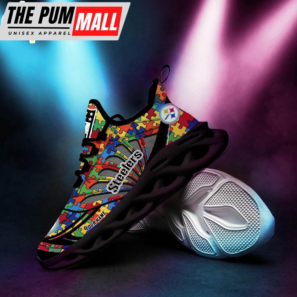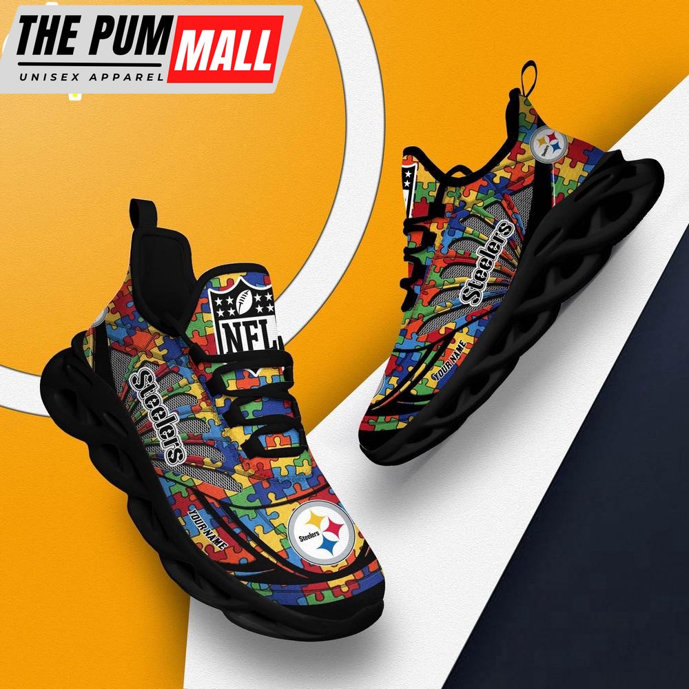 Custom Name NFL Pittsburgh Steelers Autism Clunky Max Soul Shoes