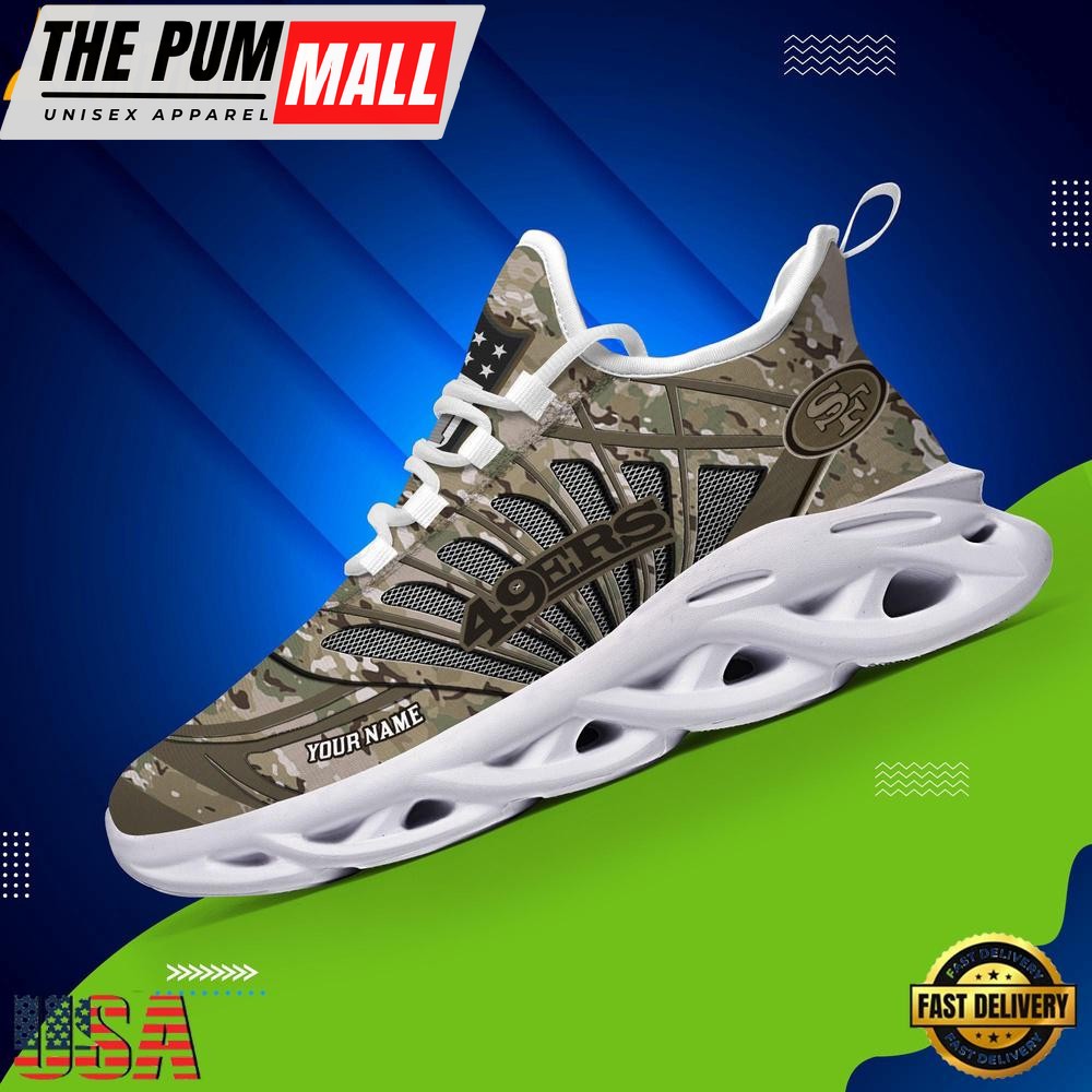 Custom Name NFL San Francisco 49ers Camo Veteran Day Max Soul Shoes