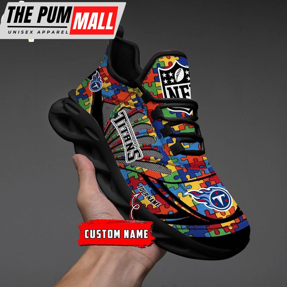 Custom Name NFL Tennessee Titans Autism Clunky Max Soul Shoes