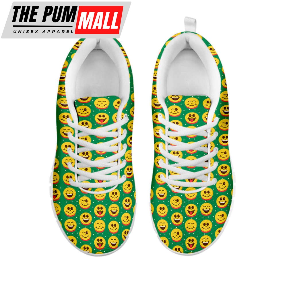 Cute Christmas Emoji Pattern Print White Running Shoes, Gift For Men And Women