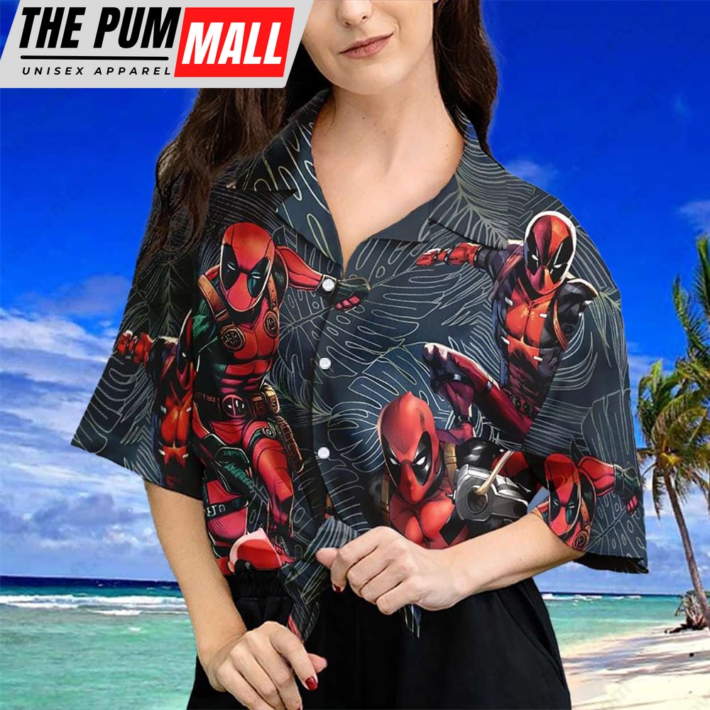 Deadpool Avengers Tropical Leaves Button Up Hawaiian Shirt