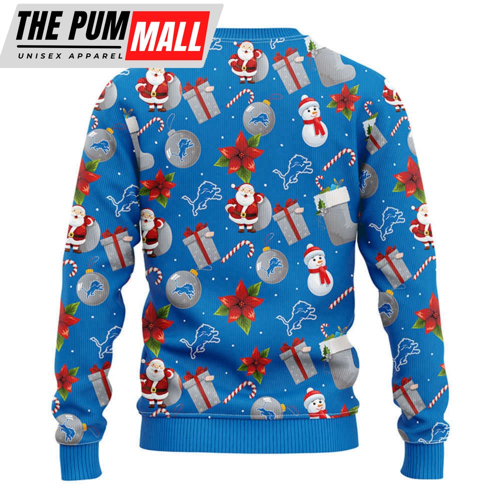 Detroit Lions Santa Claus Snowman Christmas Ugly Sweater, Gift For Christmas