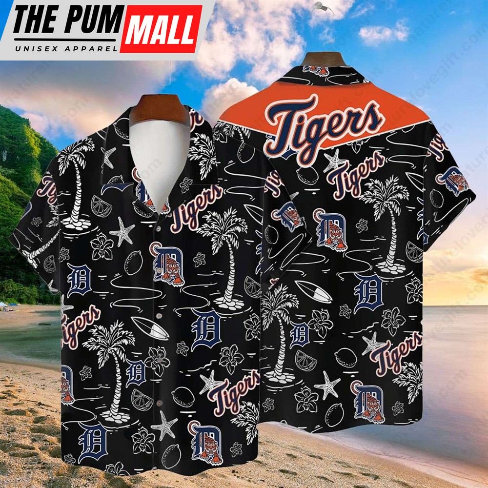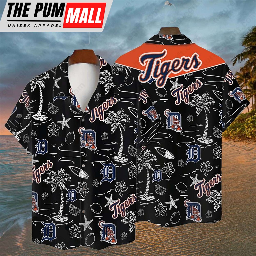 Detroit Tigers Tropical Palms MLB Black Hawaiian Shirt