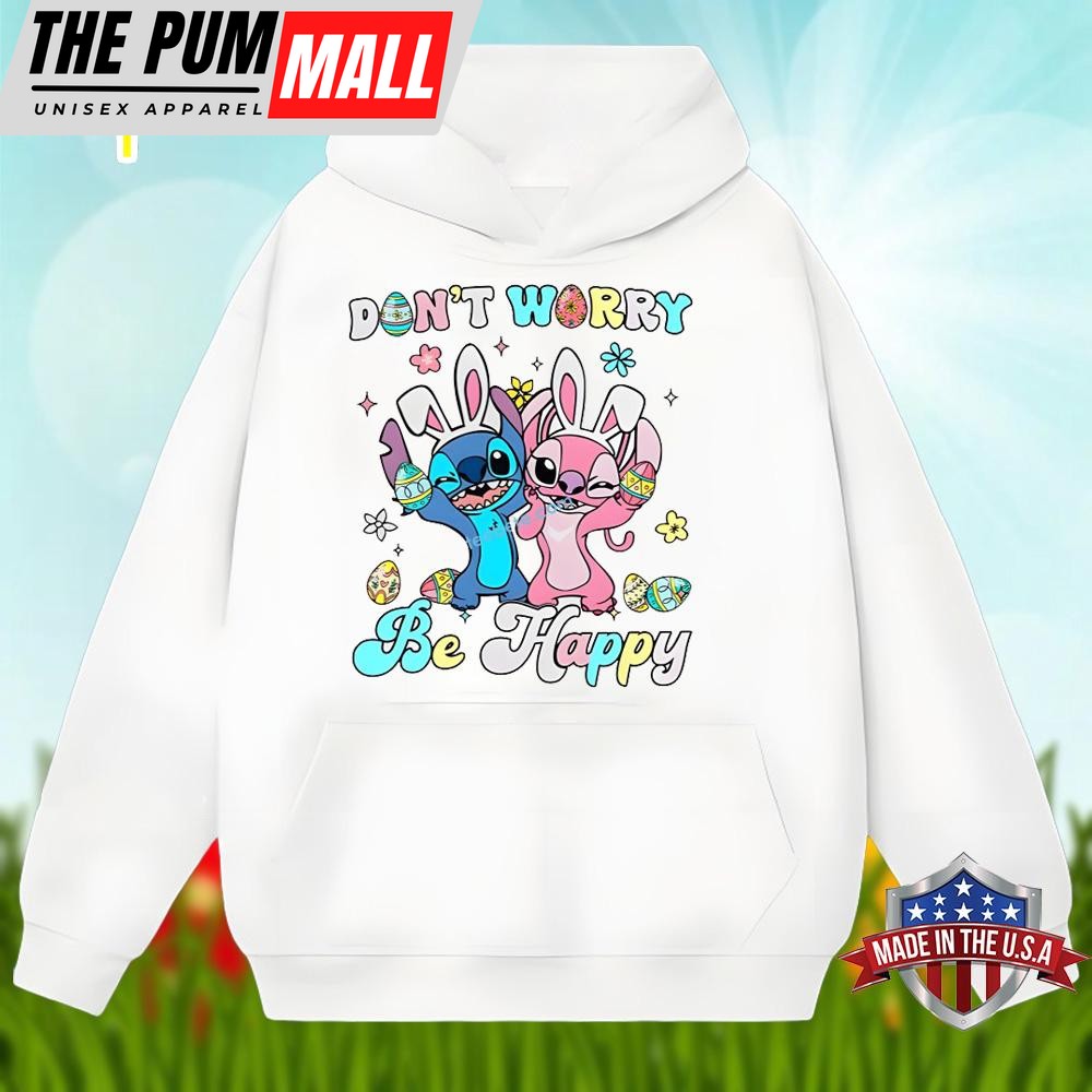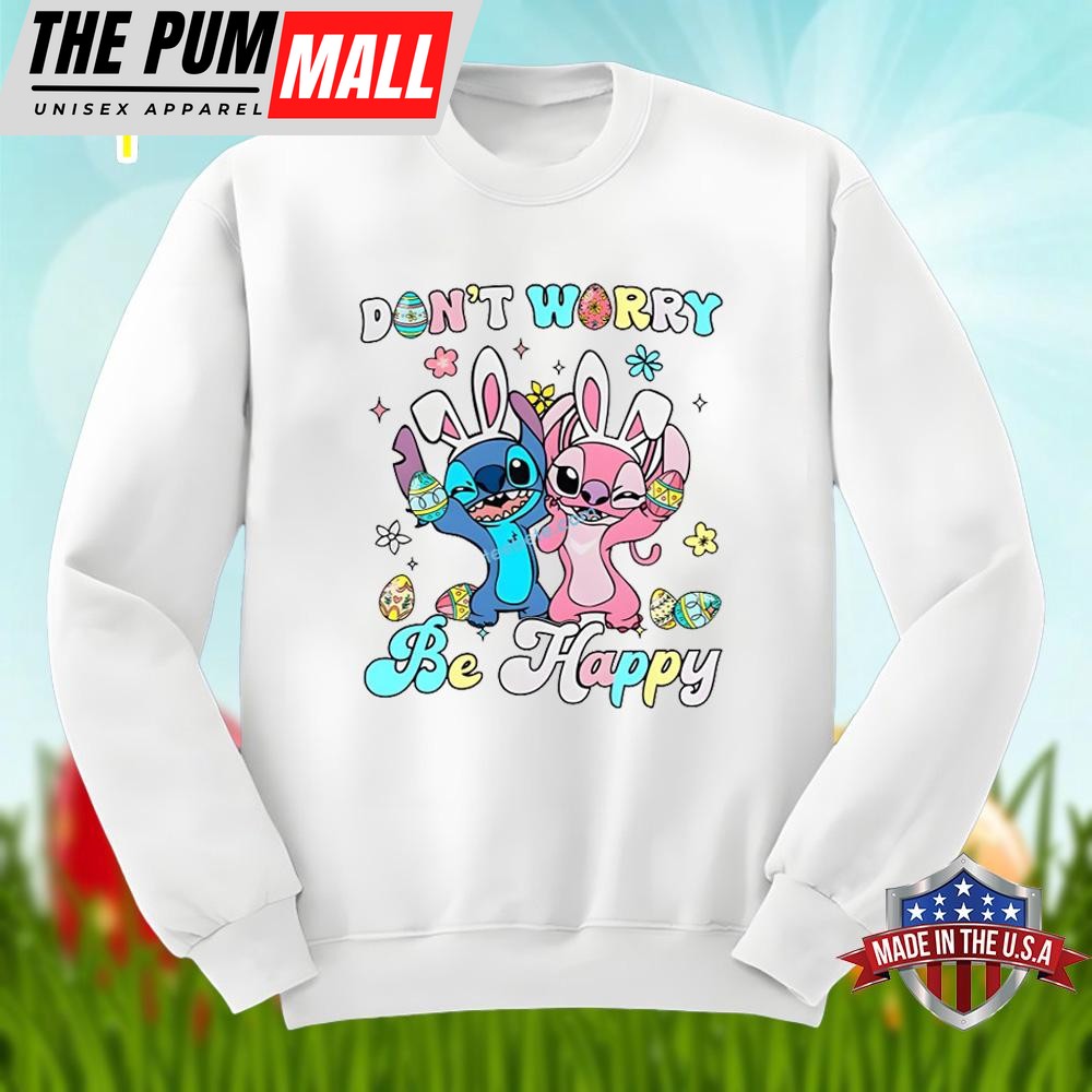 Dont Worry Be Happy With Stitch And Angel Easter Graphic Shirt