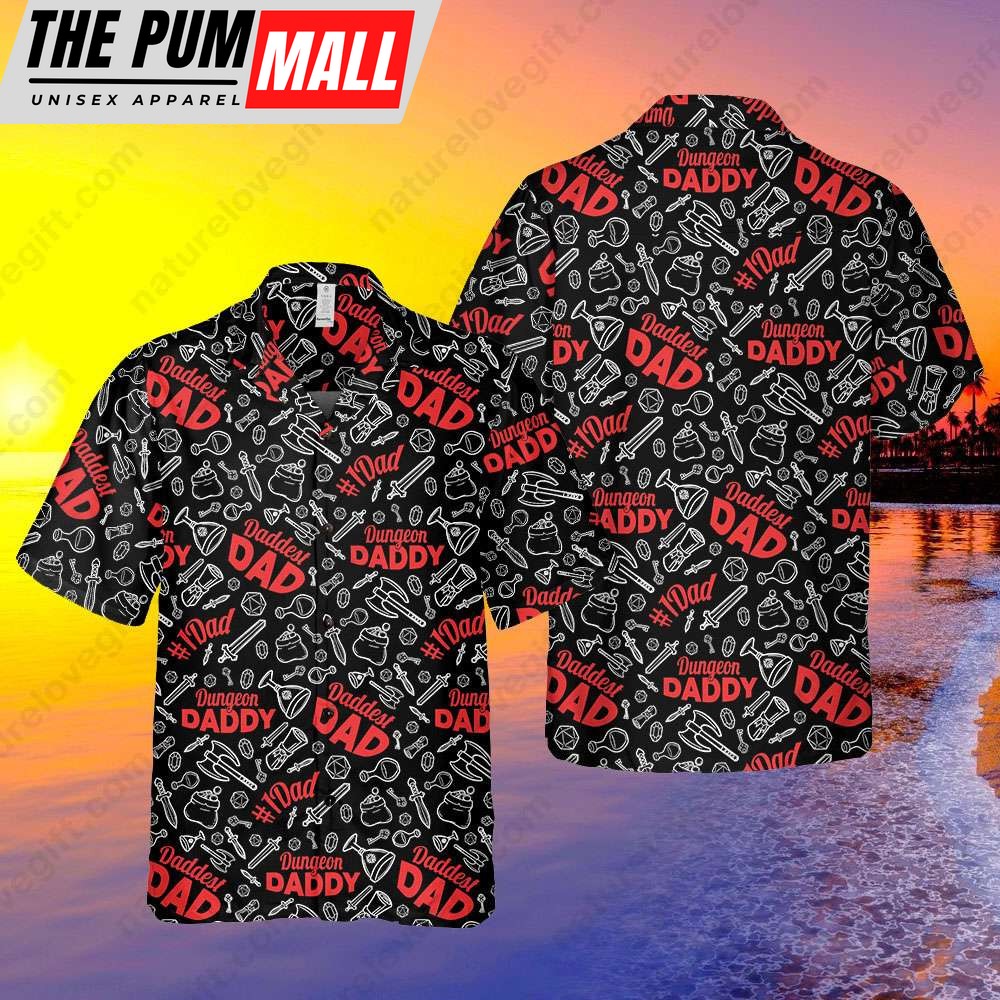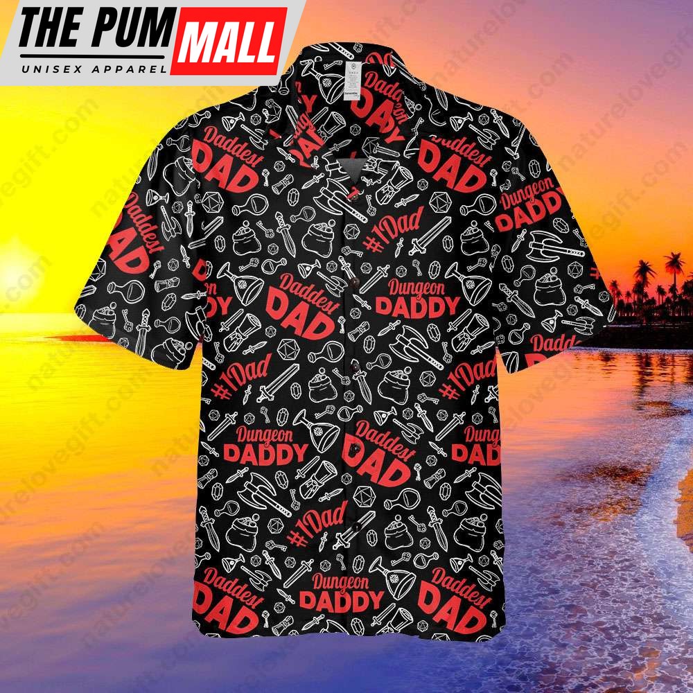 Dungeon Daddy Button Up Hawaiian Shirt DnD Dungeons and Dragons DM Gift