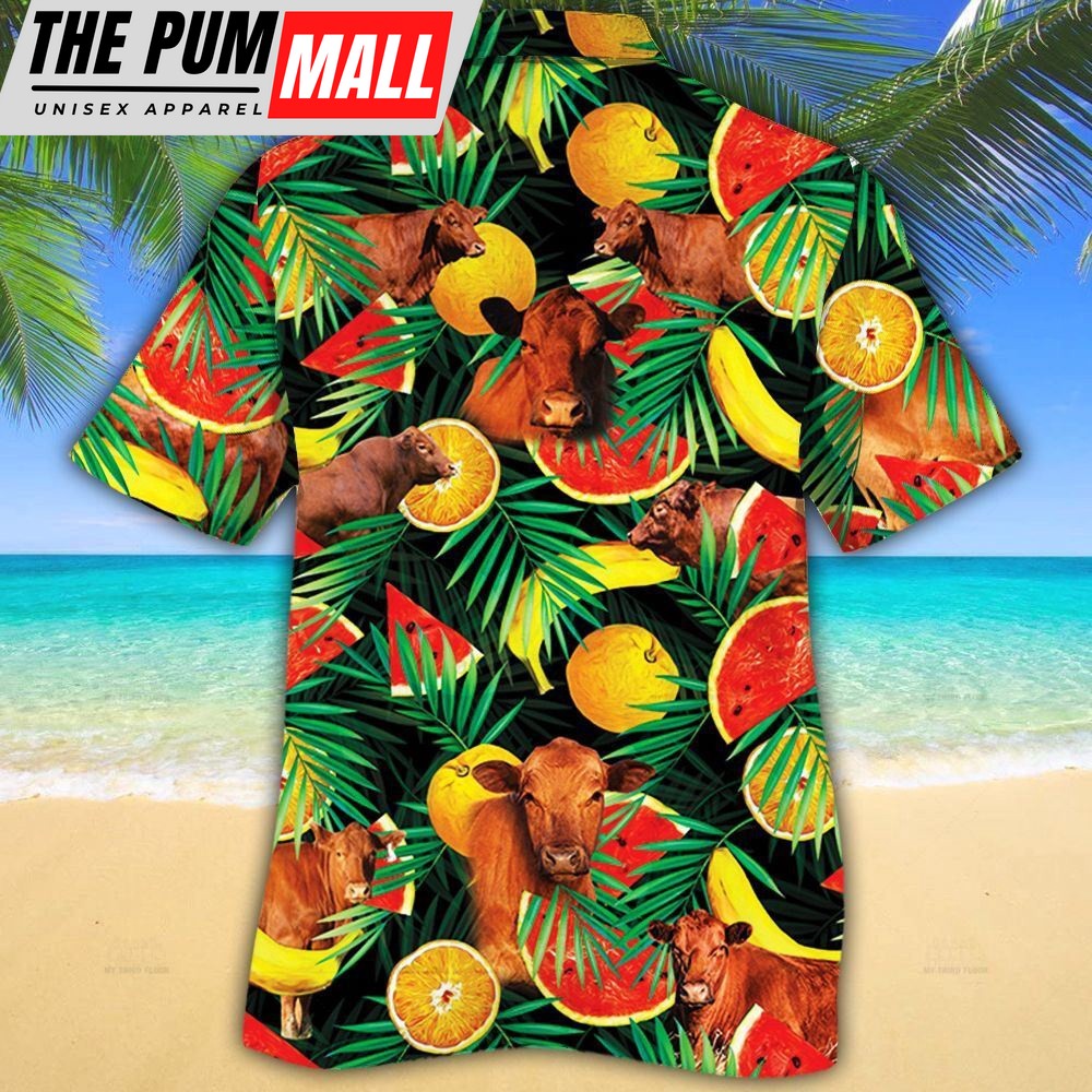Farm Hawaiian Shirt, Angus Cattle Tropical Fruits All Over Printed 3D Hawaiian Shirt, Animal Hawaiian Shirt