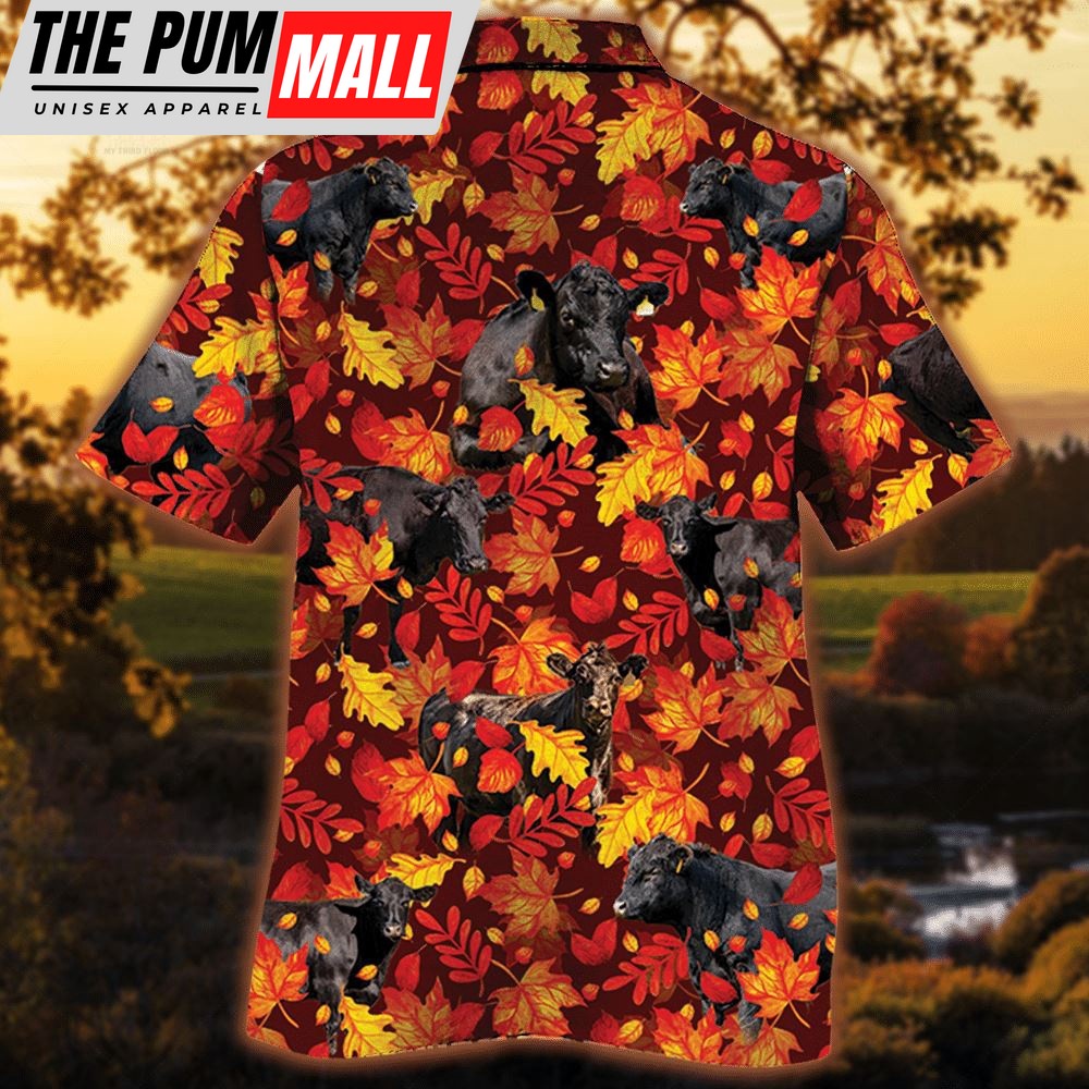 Farm Hawaiian Shirt, Black Angus Cattle Autumn Leaves All Over Printed 3D Hawaiian Shirt, Animal Hawaiian Shirt