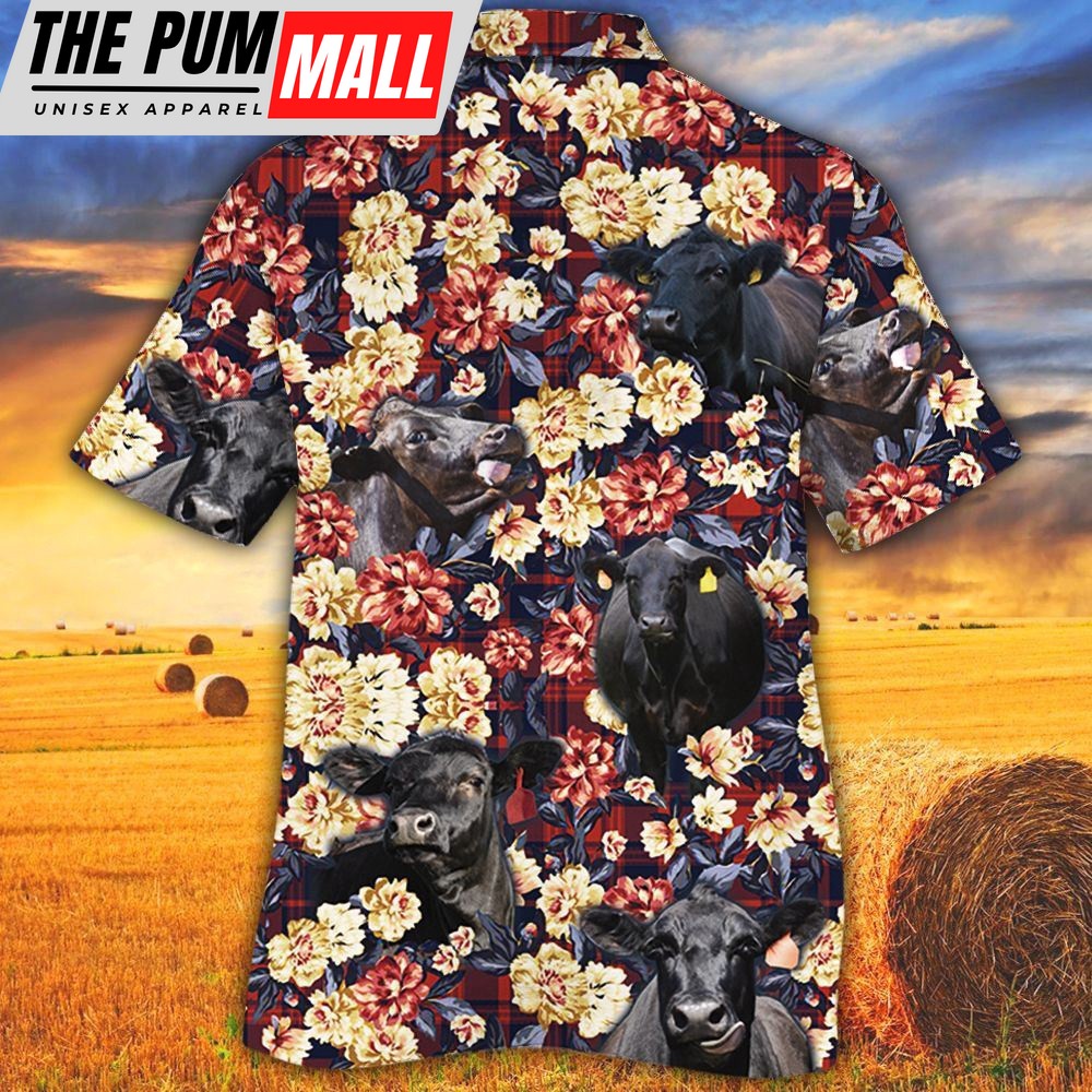 Farm Hawaiian Shirt, Black Angus Cattle Red Plaid Pattern All Over Printed 3D Hawaiian Shirt, Animal Hawaiian Shirt