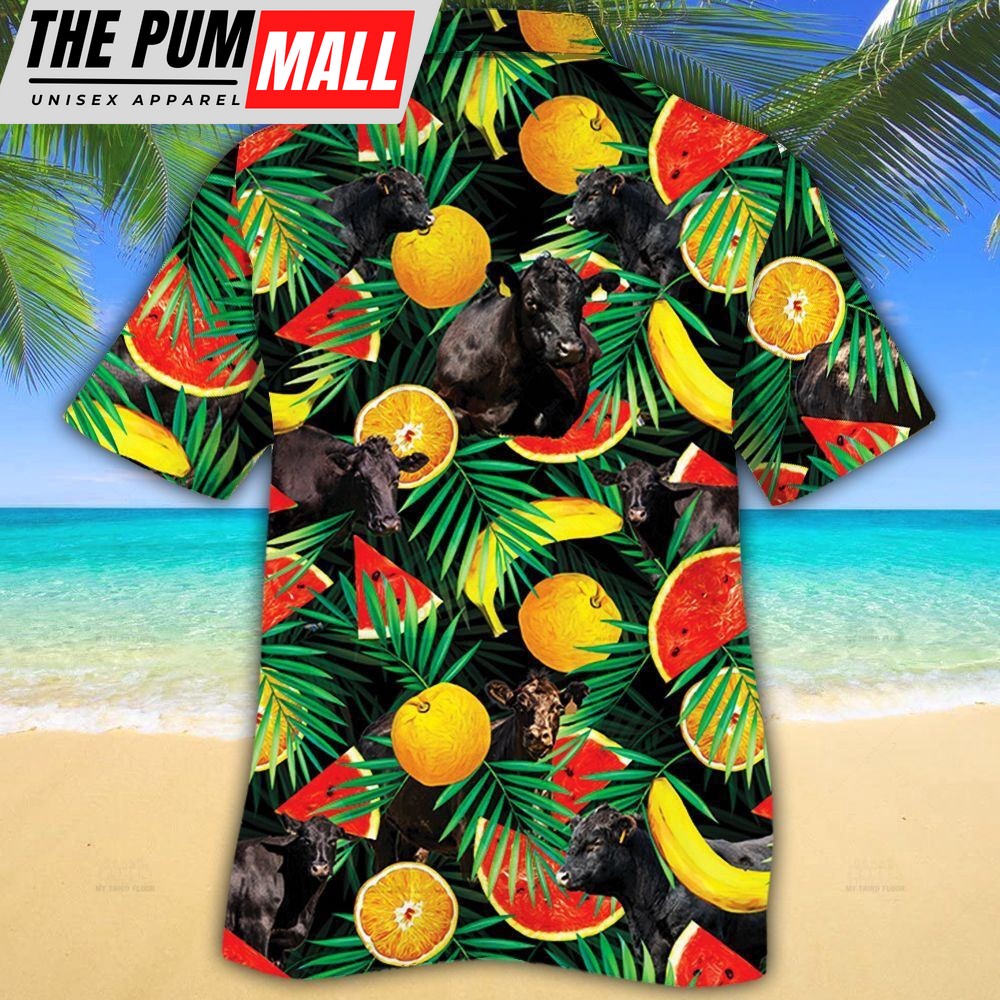 Farm Hawaiian Shirt, Black Angus Cattle Tropical Fruits All Over Printed 3D Hawaiian Shirt, Animal Hawaiian Shirt